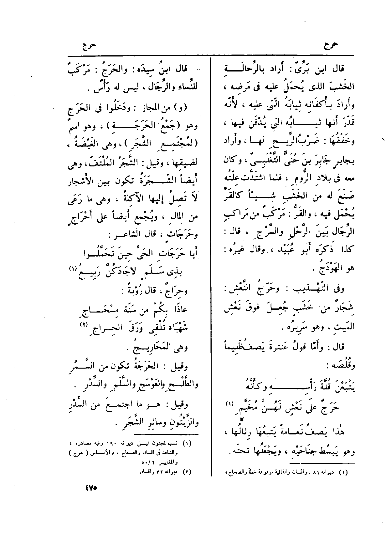وَفِي التّهْذيب: وحَرَجُ النَّعْشِ: شَجَارٌ من خَشَبٍ جُعِلَ فوقَ نَعْشِ المَيتِ، وَهُوَ سَرِيرُه.