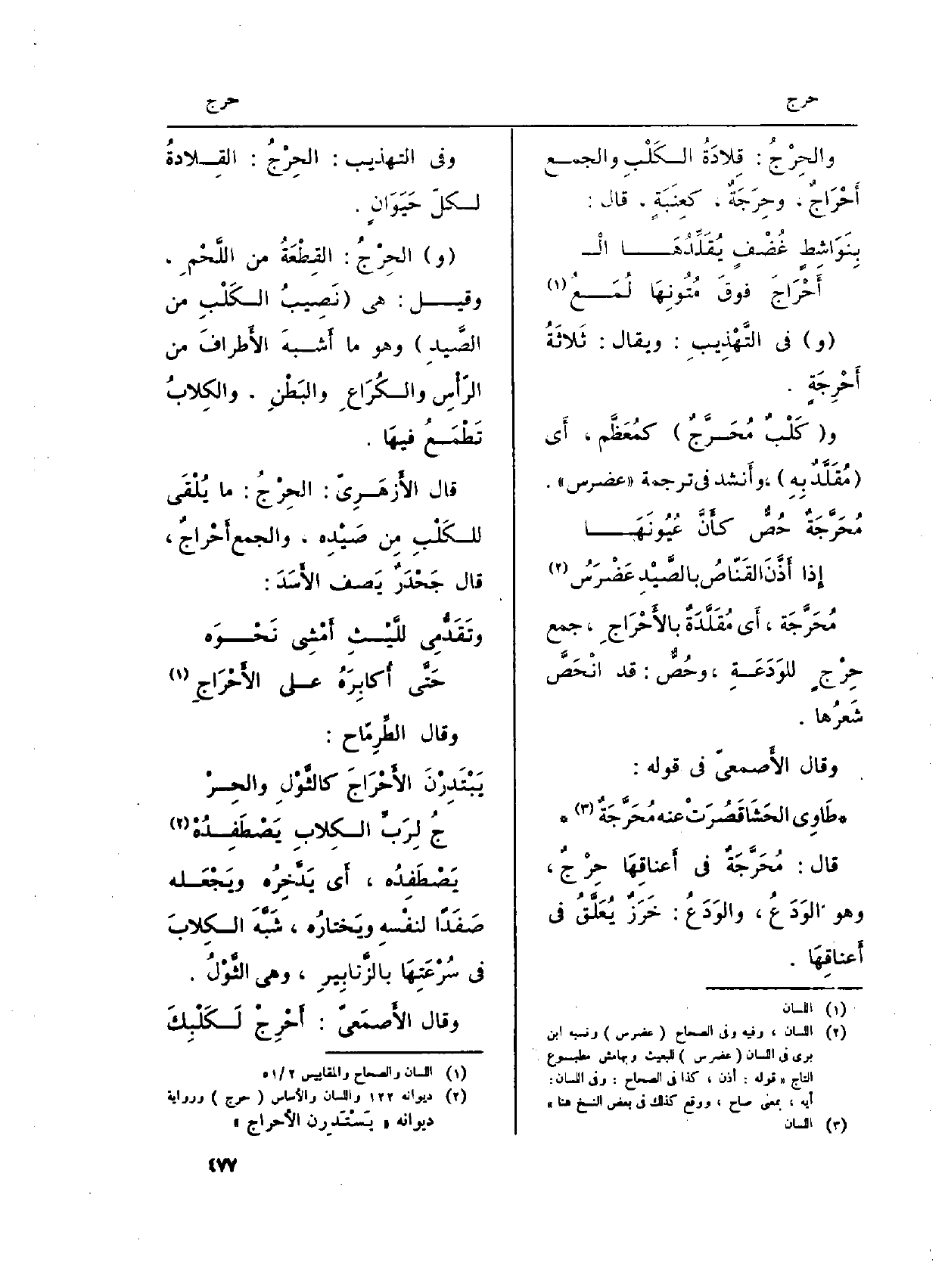 وَفِي التَّهْذِيب: الحِرْجُ: القِلادةُ لكلّ حَيَوَانٍ.