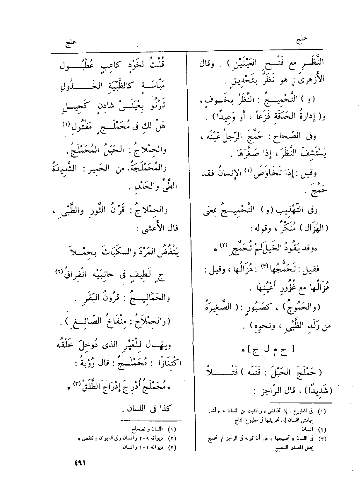 والحِمْلاجُ: قَرْنُ الثَّورِ والظَّبْيِ، قَالَ الأَعشى: