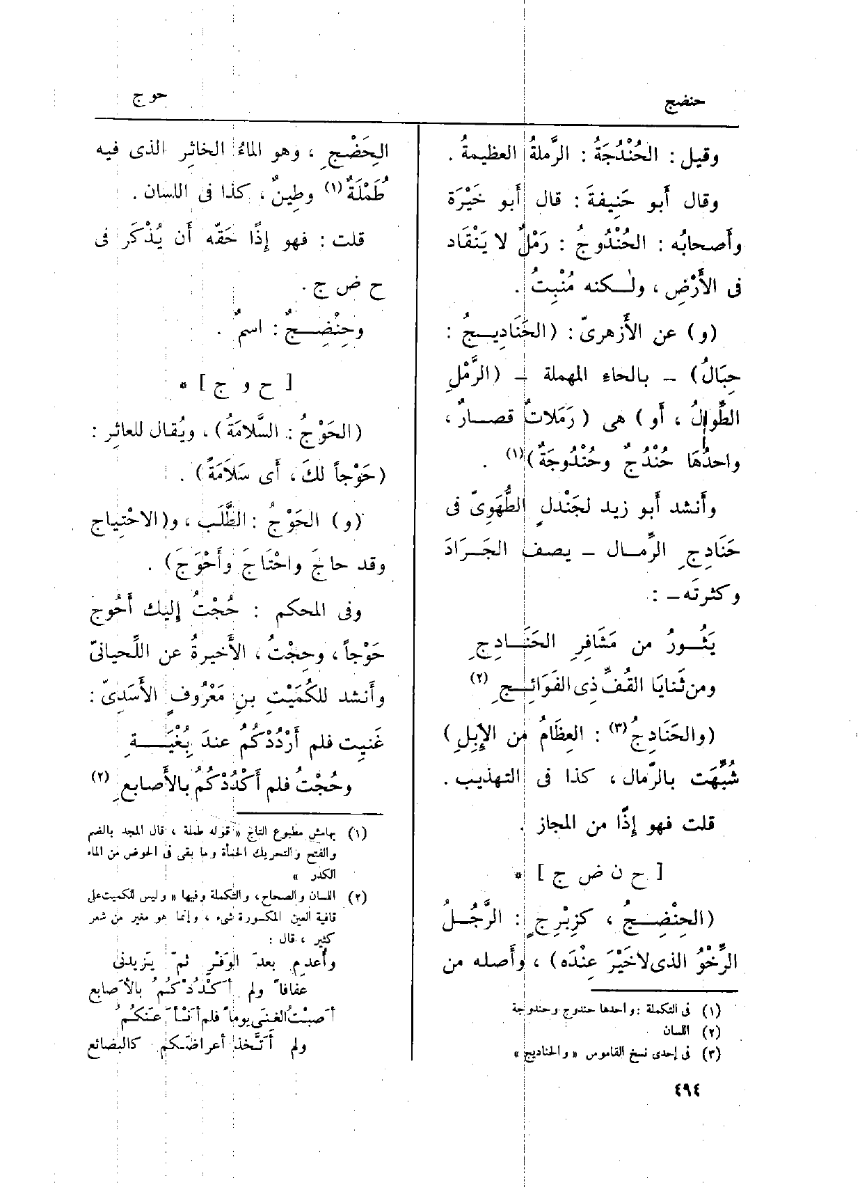وَفِي الْمُحكم: {حُجْتُ إِليك} أَحُوج {حَوْجاً،} وحِجْتُ، الأَخيرةُ عَن اللِّحيانيّ وأَنشد للكُمَيْتِ بنِ مَعْرُوفٍ الأَسَدِيّ: