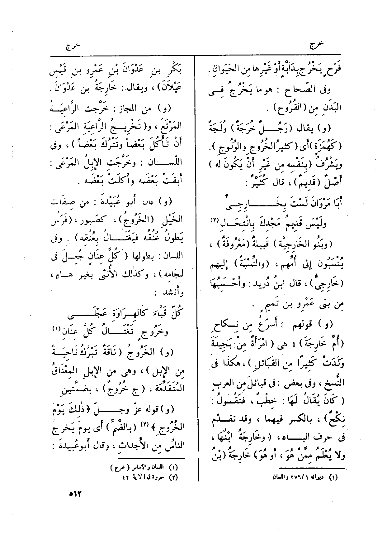 (و) قَوْله عزّ وجلّ: {ذَلِكَ يَوْمُ الْخُرُوجِ} (سُورَة ق، الْآيَة: 42) (بالضَّمِّ) أَي يومَ يَخرج الناسُ مِن الأَجداثه، وَقَالَ أَبو عُبيدةَ: