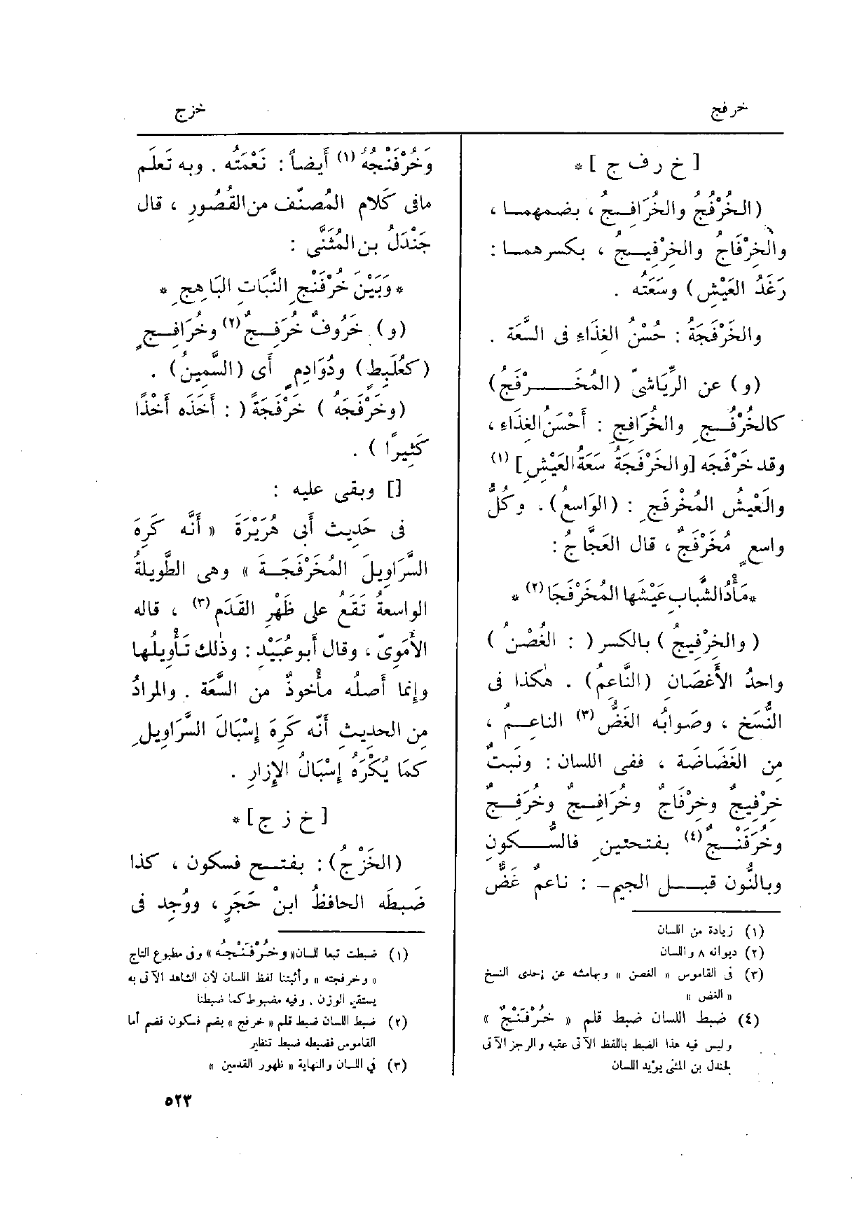 : (الخَزْجُ) : بِفَتْح فَسُكُون، كَذَا ضَبطَه الحافظُ ابنْ حَجَرٍ، ووُجِد فِي