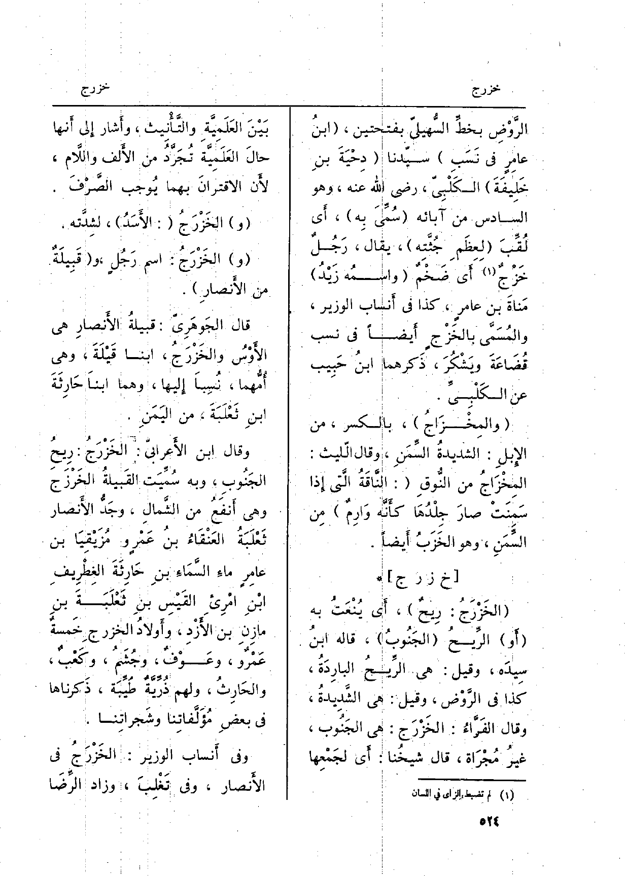 وَفِي أَنساب الْوَزير: الخَزْرَجُ فِي الأَنصار، وَفِي تَغْلِبَ، وَزَاد الرِّضَا