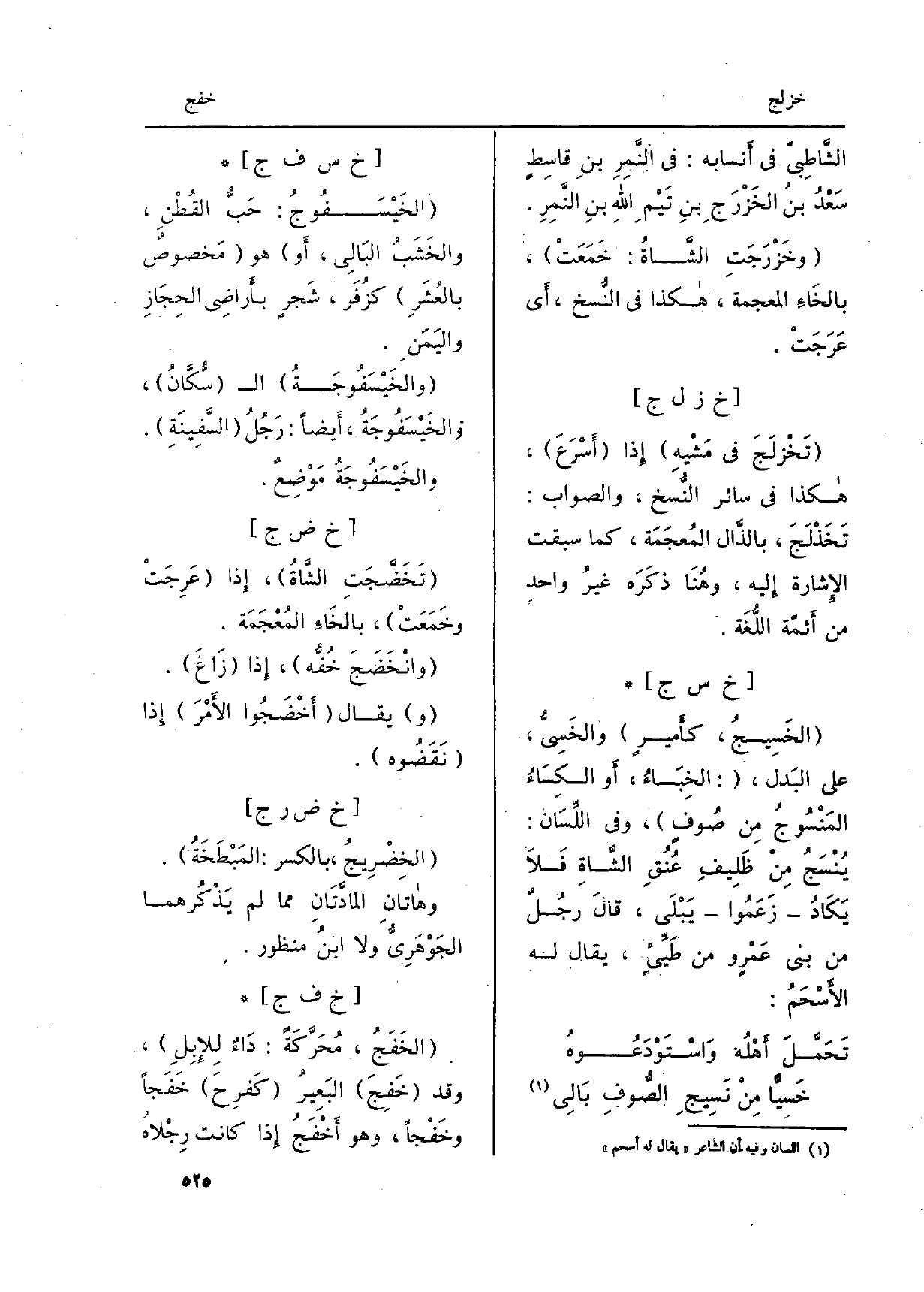 (وخَزْرَجَتِ الشَّاةُ: خَمَعَتْ) ، بالخَاءِ الْمُعْجَمَة، هاكذا فِي النُّسخ، أَي عَرَجَتْ.