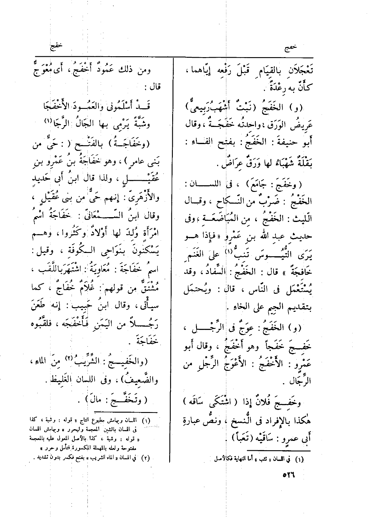 وَمن ذَلِك عَمُودٌ أَخْفَجُ، أَي مُعْوَجٌّ قَالَ: