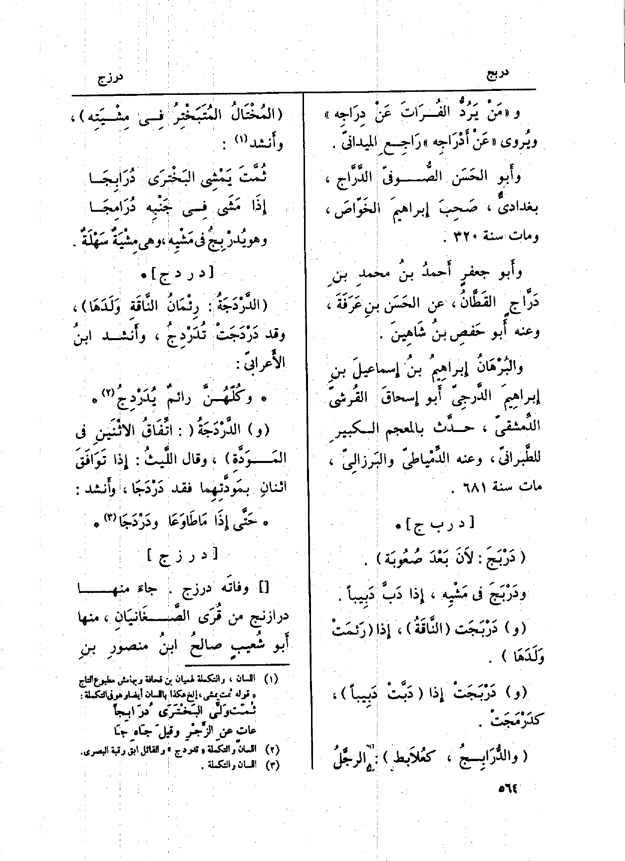 (والدُّرَابِجُ، كعُلاَبط) : الرجَّلُ (المُخْتَالُ المُتَبَخْتِرُ فِي مِشْيَتِه) ، وأَنشد: