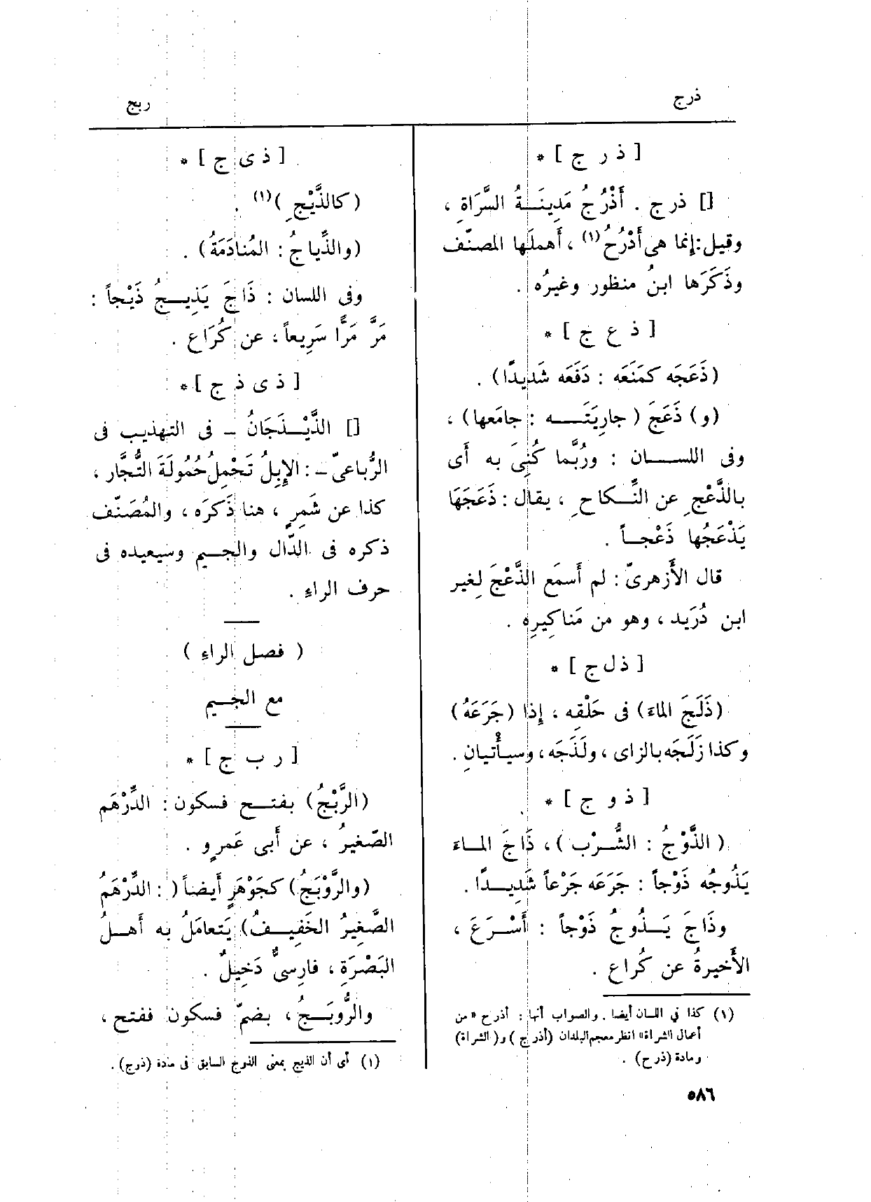 : ذرج. أَذْرُجُ مَدِينَةُ السَّرَاةِ، وَقيل: إِنما هِيَ أَدْرُحُ، أَهملَها المصنّف وذَكَرَها ابنُ مَنْظُور وغيرُه.