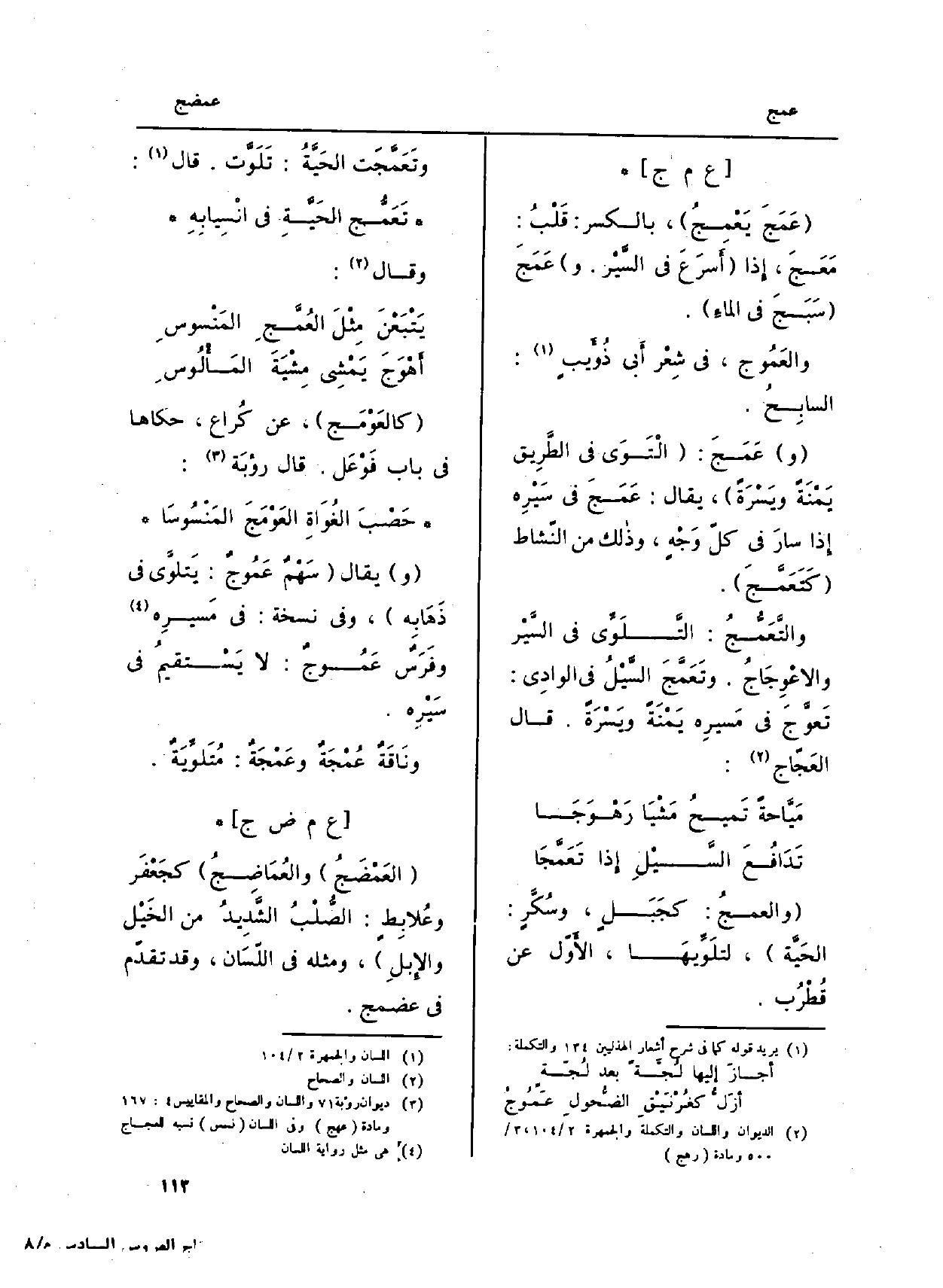 وتَعَمَّجَت الحَيَّةُ: تَلَوَّت. قَالَ: