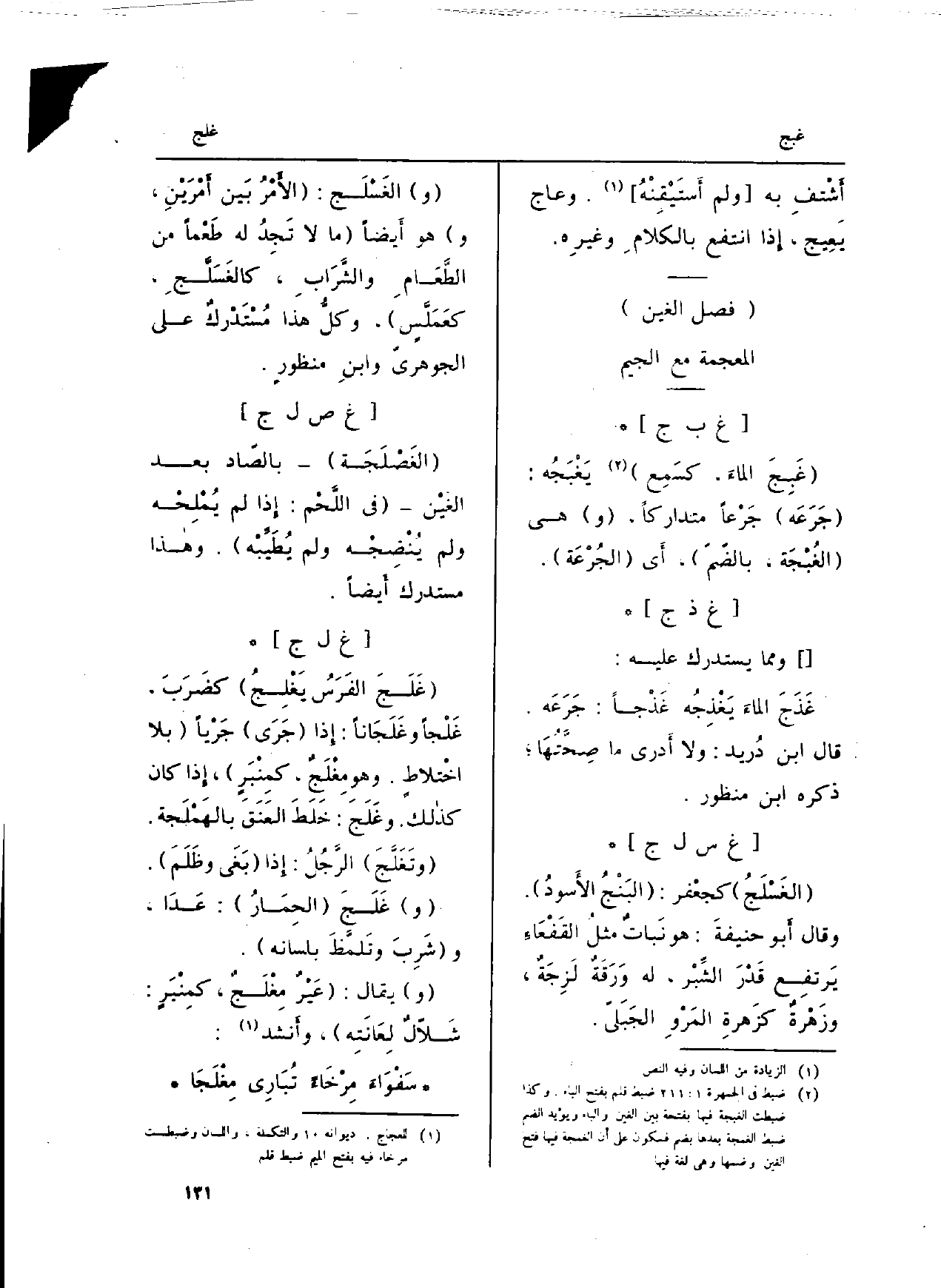 (فصل الْغَيْن) الْمُعْجَمَة مَعَ الْجِيم)