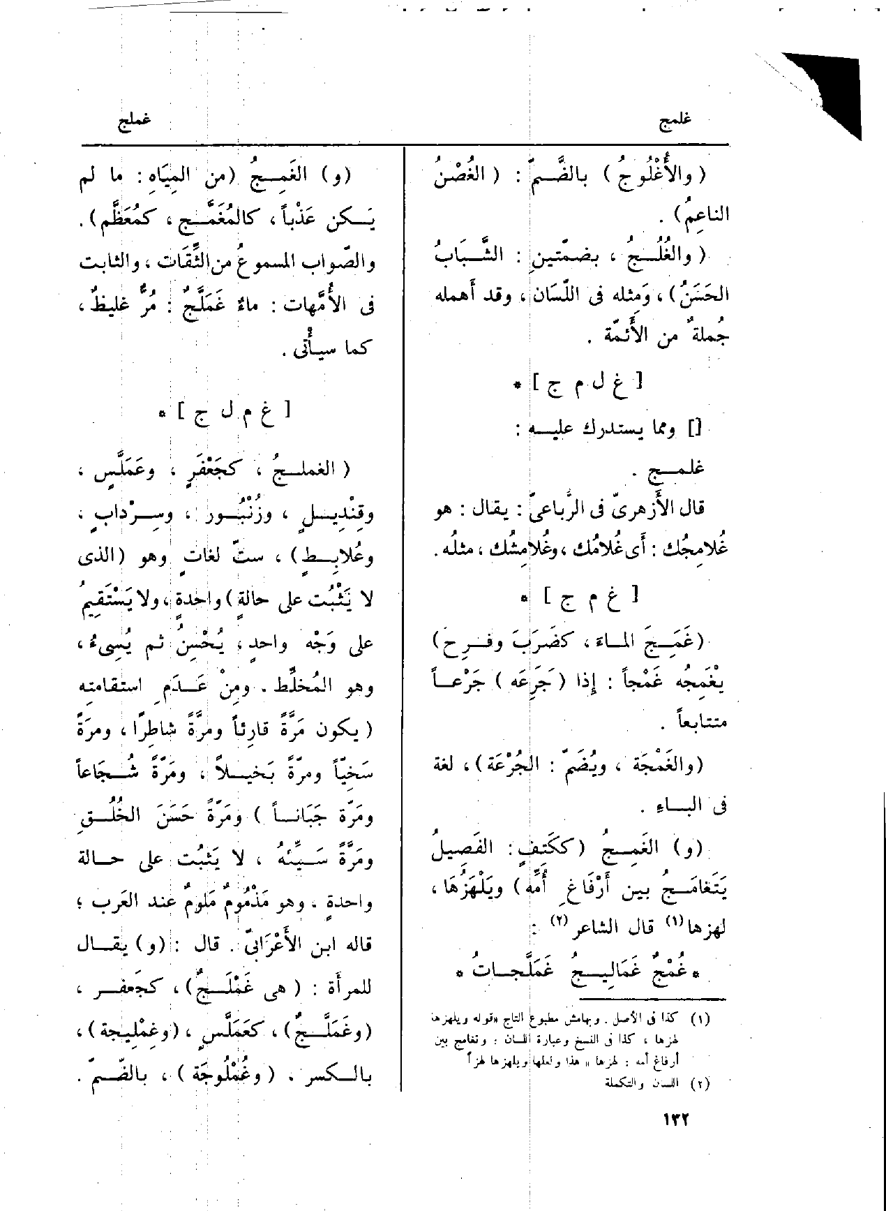 غُمْجٌ غَمَالِيجُ غَمَلَّجاتُ