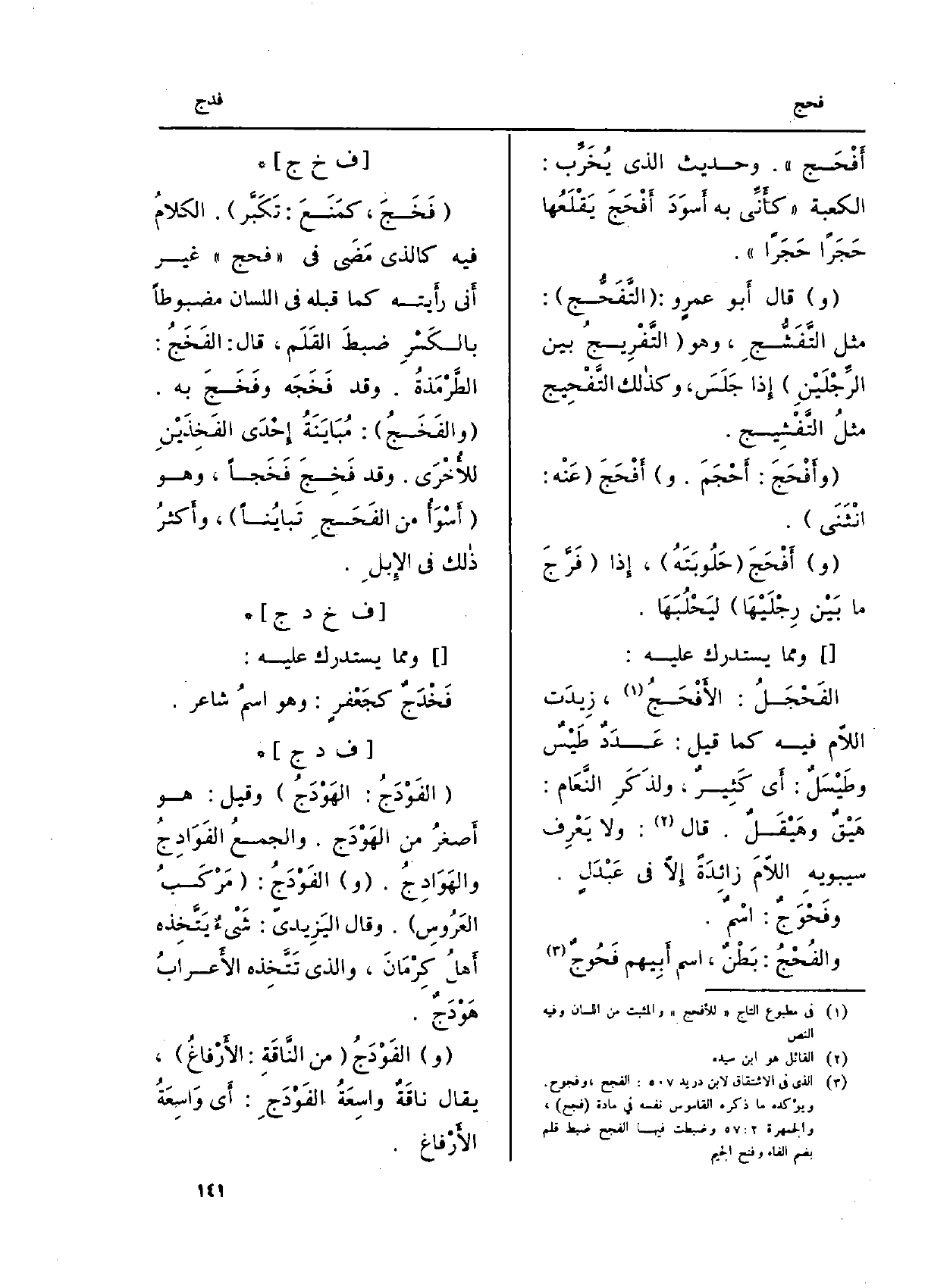 : (فَخَجَ، كمَنَعَ: تَكَبَّر) . الكلامُ فِيهِ كَالَّذي مَضَى فِي (فحج) غير أَني رأَيته كَمَا قبله فِي (اللِّسَان) مضبوطاً بالكَسْرِ ضبطَ القَلَم، قَالَ: الفَخَجُ: الطَّرْمَذةُ. وَقد فَخَجَه وفَخَجَ بِهِ. (والفَخَجُ) : مُبَايَنَةُ إِحْدَى الفَخِذَيْنِ للأُخْرَى. وَقد فَخِجَ فَخَجاً، وَهُوَ (أَسْوَأُ من الفَحَجِ تَبايُناً) ، وأَكثرُ ذالك فِي الإِبلِ.