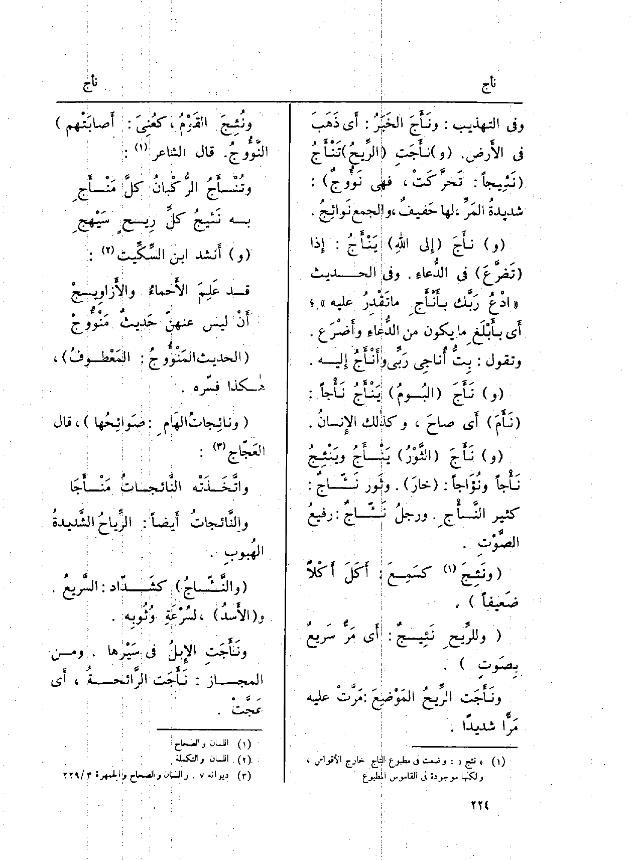 {ونَأَجَت الرِّيحُ المَوْضِعَ: مَرَّتْ عَلَيْهِ مَرًّا شَدِيدا.