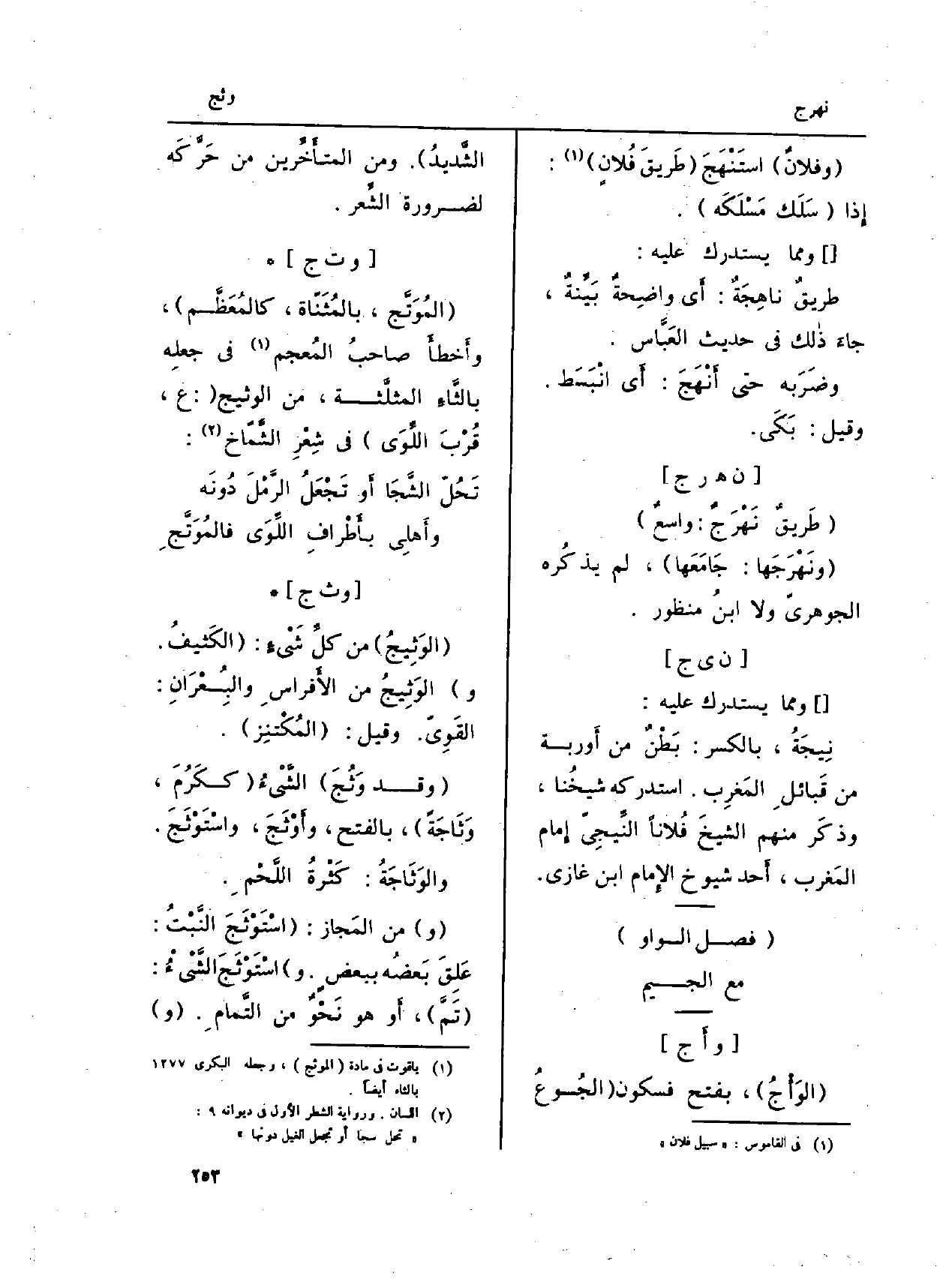 : ( {المُوَتَّج، بالمُثَنَّة، كالمُعَظَّم) ، وأَخطأَ صاحبُ (المُعجم) فِي جعلِه بالثَّاءِ المثلَّثة، من الوثيج (: ع، قُرْبَ اللِّوَى) فِي شِعْرِ الشَّمّاخ:
