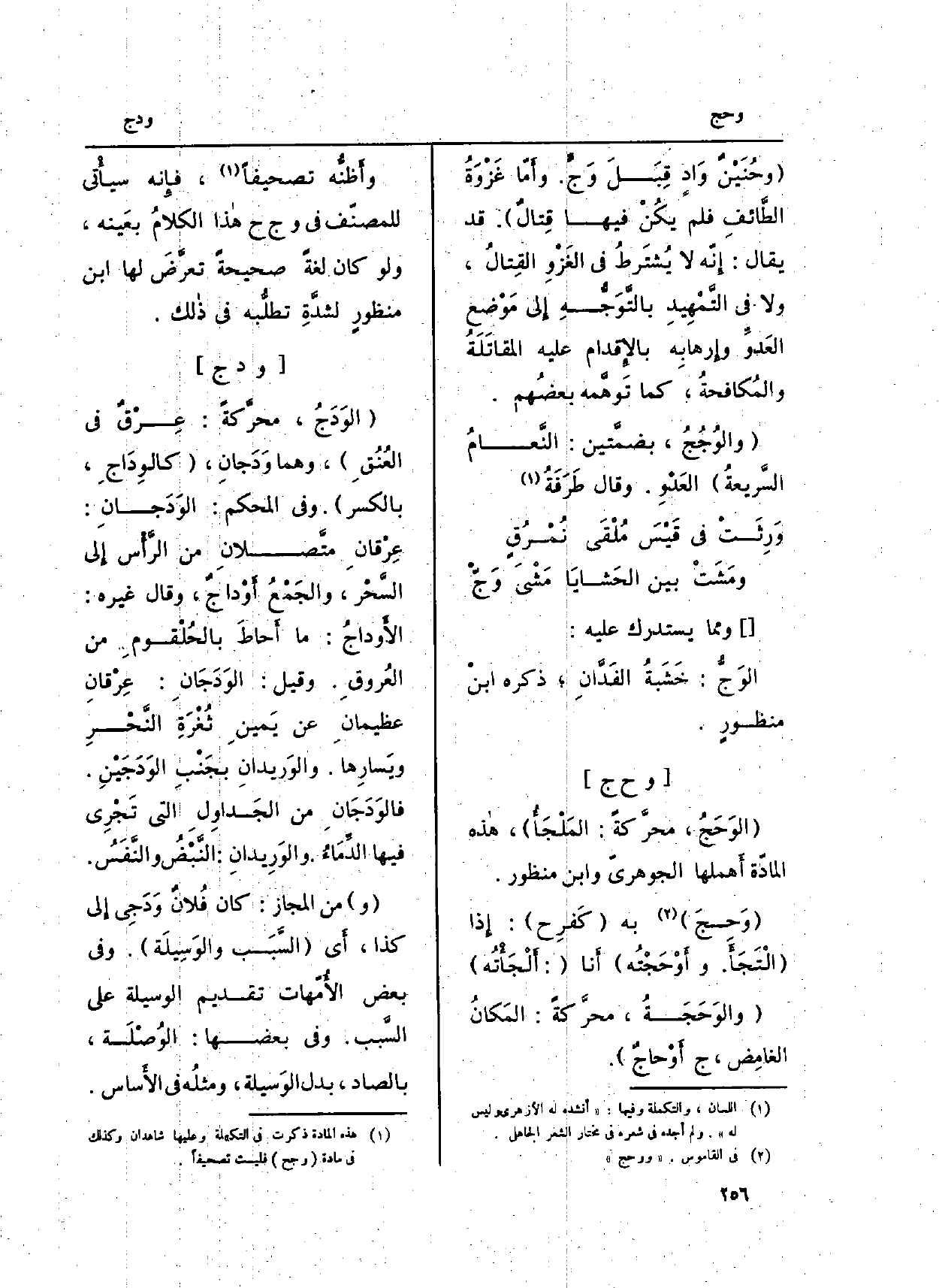 : (} الوَحَجُ، محرَّكةً: المَلْجَأُ) ، هاذه الْمَادَّة أَهملها الجوهريّ وَابْن مَنْظُور.
