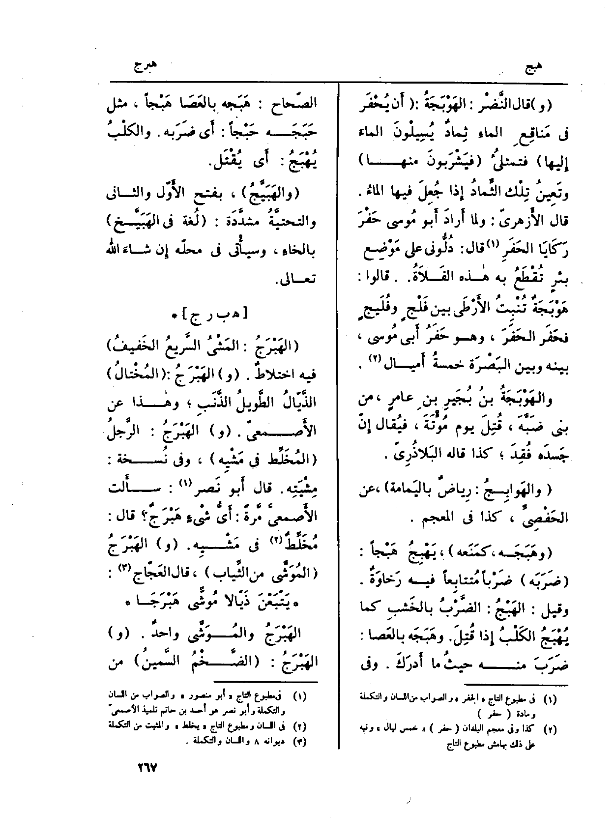 : (الهَبْرَجُ: المَشْيُ السَّريعُ الخَفيفُ) فِيهِ اختلاطٌ. (و) الهَبْرَجِ: (المُخْتالُ) الذَّيّالُ الطَّويلُ الذَّنَبِ؛ وهاذا عَن الأَصمعيّ. (و) الهَبْرَجُ: الرَّجلُ (المُهَلِّط فِي مَشْيِه) ، وَفِي نُسخة: مِشْيَتِه. قَالَ أَبو نَصر: سأَلت الأَصمعيَّ مرّة: أَيُّ شيْءٍ هَبْرَجٌ؟ قَالَ: مُخَلِّطٌ فِي مَشْيِه. (و) الهَبْرَجُ (المُوَشَّى من الثِّياب) ، قَالَ العجّاج: