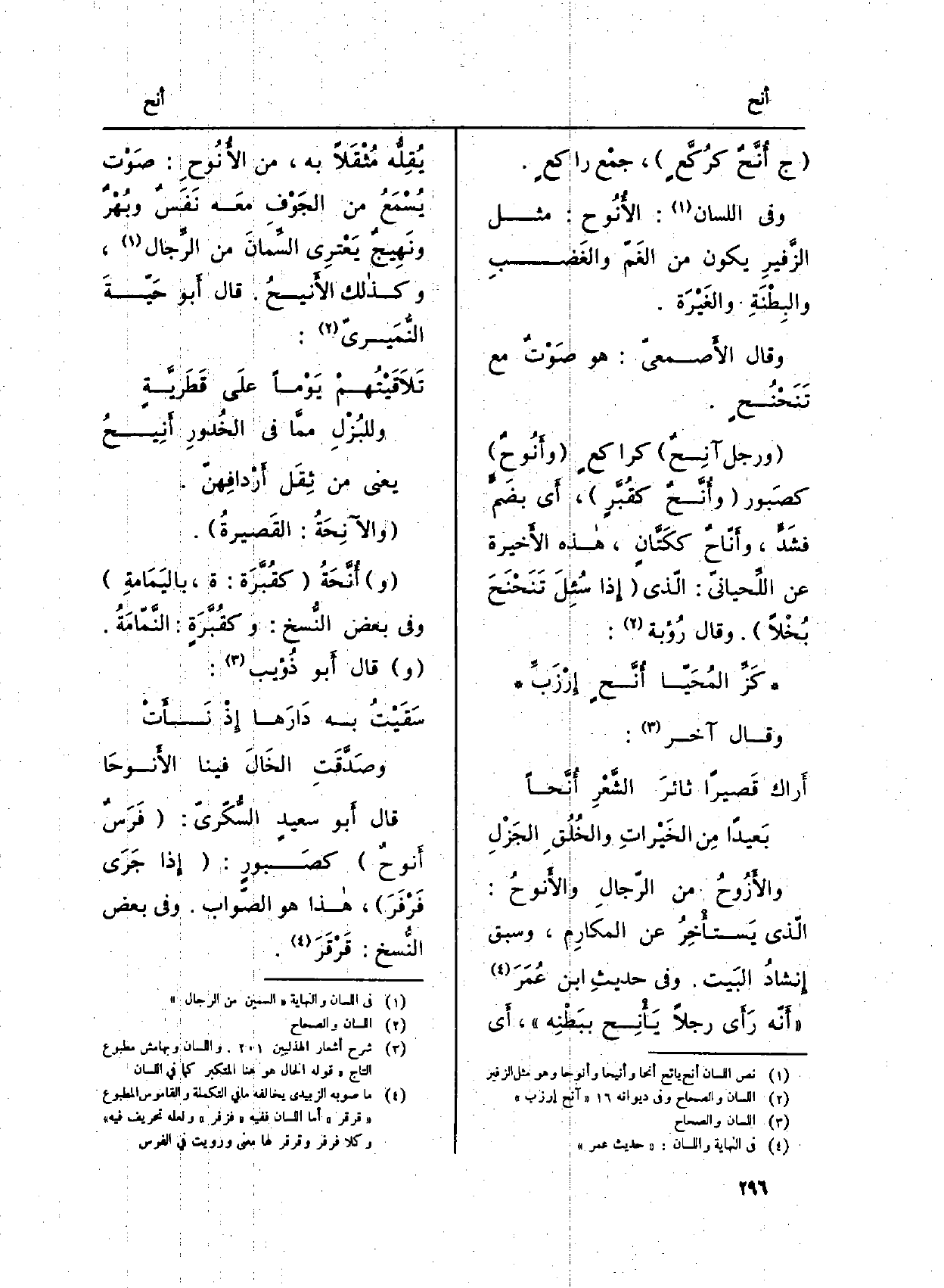 وَفِي (اللِّسَان) :} الأُنُوح: مثل الزَّفيرِ يكون من الغَمّ والغَضبِ والبِطْنَةِ والغَيْرَة.