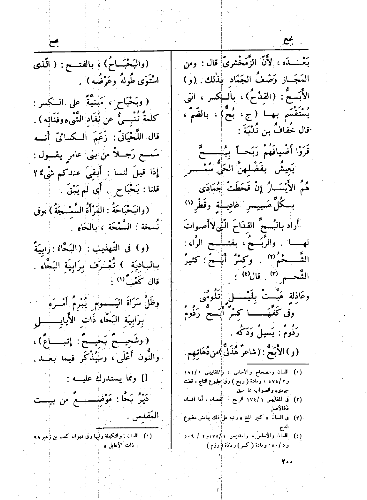 بَعْدَه، لأَنّ الزَّمَخْشريّ قَالَ: وَمن المَجَاز وَصْفُ الجَمَادِ بذالك. (و) {الأَبَحُّ: (القِدْحُ) ، بِالْكَسْرِ، الَّتِي يُسْتَقْسَم بهَا (ج،} بُحٌّ) بالضّمّ، قَالَ خُفافُ بن نُدْبَةَ.