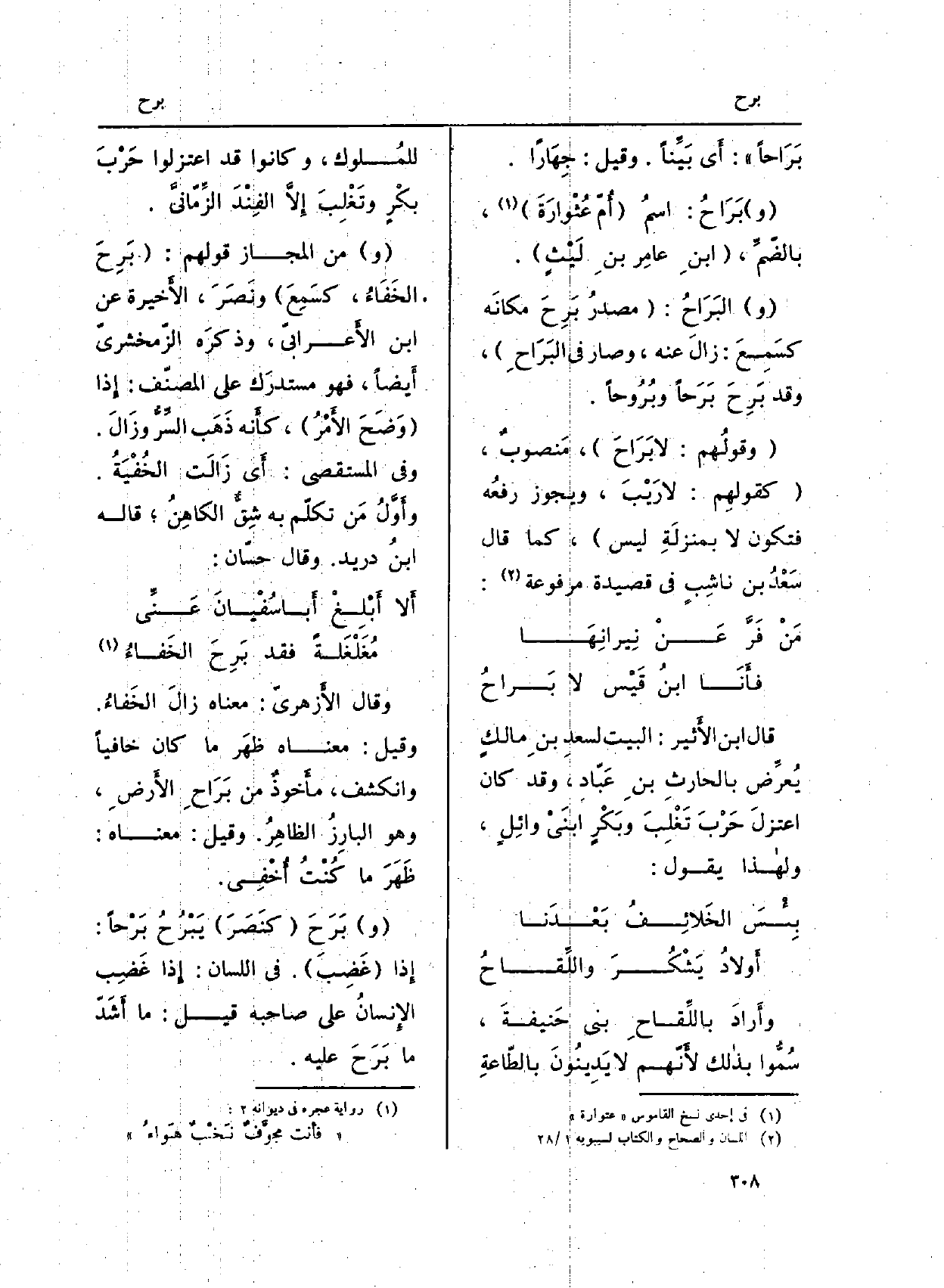 بَرَاحاً) : أَي بَيِّناً. وَقيل: جِهَاراً.