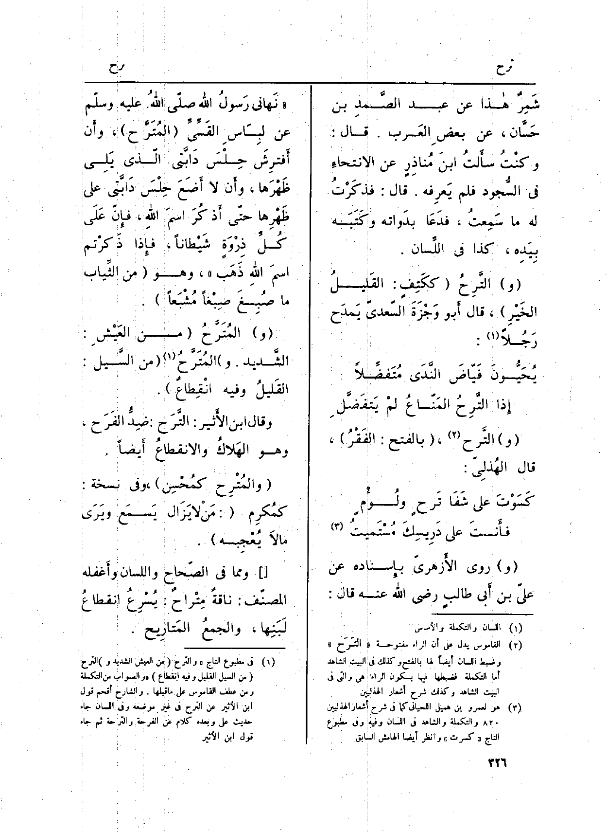 وَقَالَ ابْن الأَثير: التَّرَح: ضِدُّ الفَرَح، وَهُوَ الهَلاكُ والانقطاعُ أَيضاً.