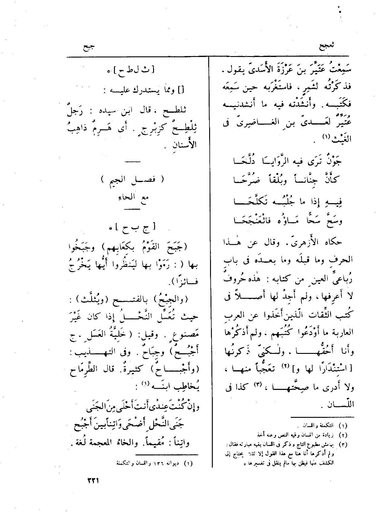 سَمِعْتُ عَتَيِّرَ بنَ عَرْزَةَ الأَسَديّ يَقُول، فذكَرْتُه لشَمِرٍ، فاستَغْرَبه حِين سَمِعَه فكَتَبه. وأَنشَدْته فِيهِ مَا أَنشدنيه عُتَيِّرٌ لعَديّ بنِ الغاضِريّ فِي الغَيْث.