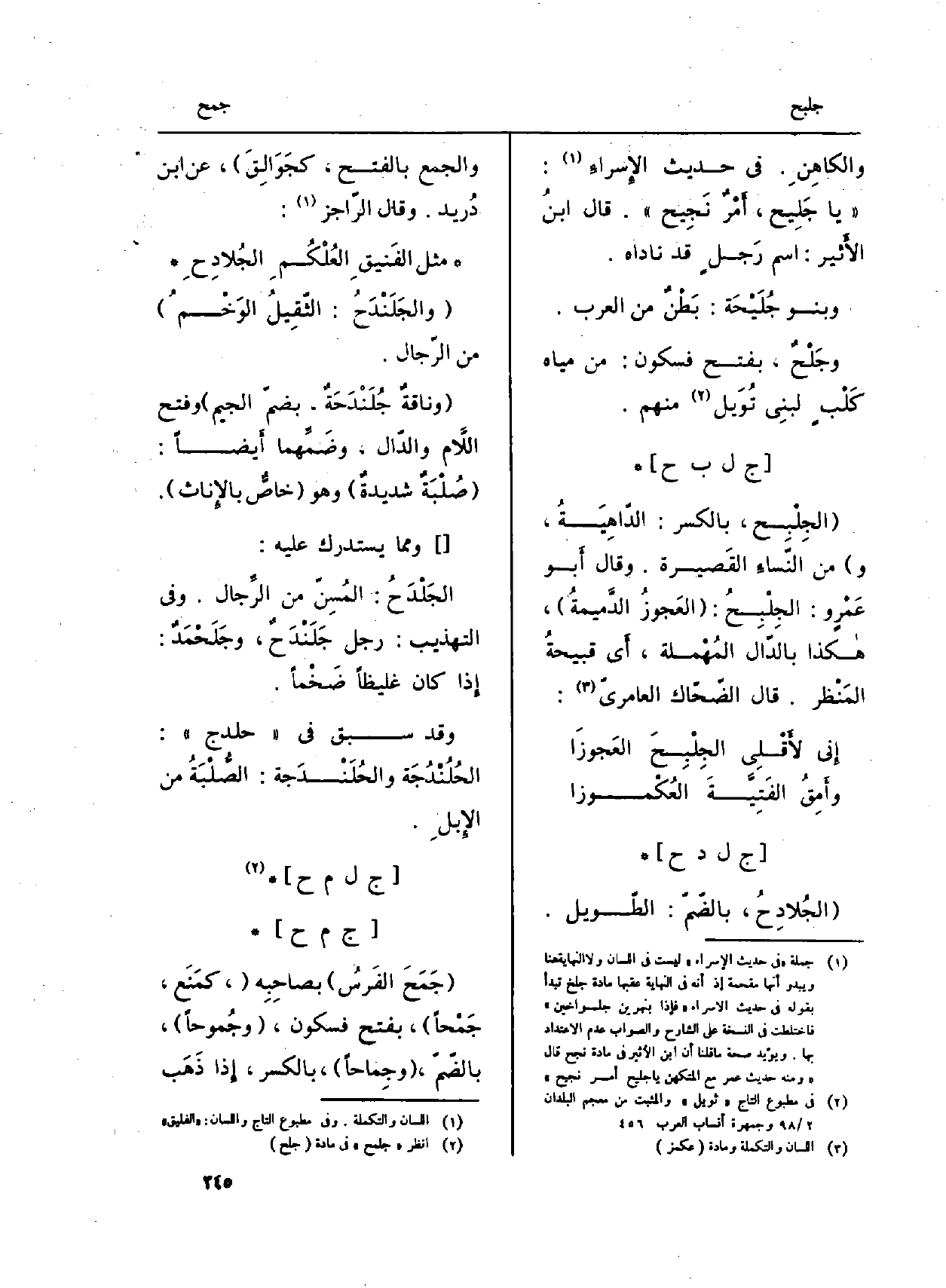 : (الجُلادِحُ، بالضّمّ: الطّويل. وَالْجمع بِالْفَتْح، كجَوالِقَ) ، عَن ابْن دُريد. وَقَالَ الرّاجز: