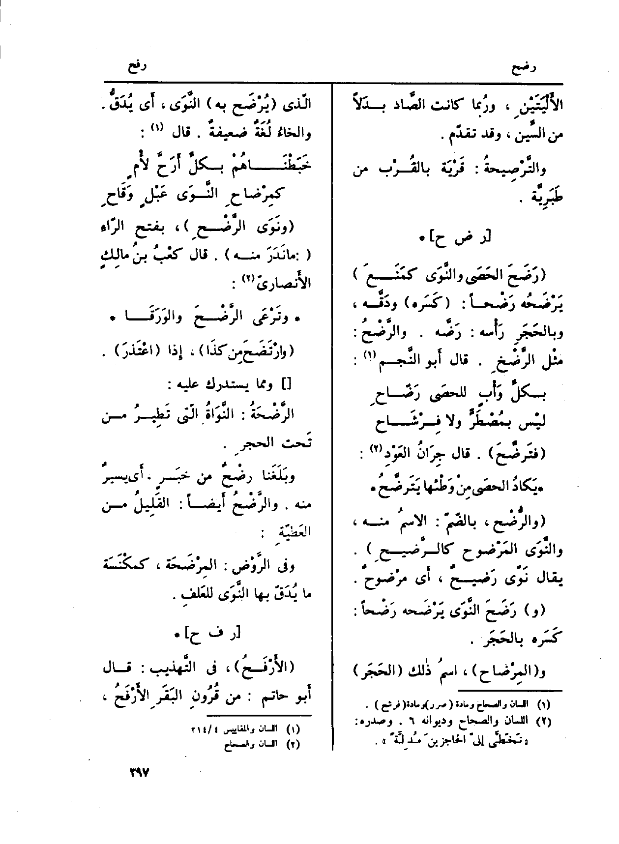 : (رَضَحَ الحَصَى والنَّوَى كمَنَعَ) يَرْضَحُه رَضْحاً: (كَسَره) ودَقَّه، وبالحَجَرِ رَأْسه: رَضَّه. والرَّضْحُ: مثْل الرَّضْخِ. قَالَ أَبو النَّجم:
