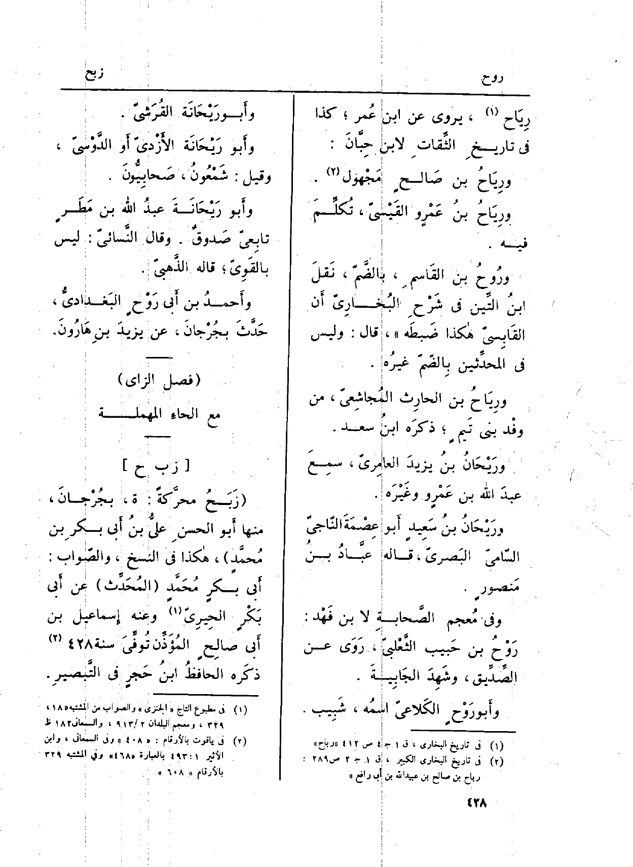 : (زَبَحُ محرَّكةً: ة، بجُرْجانَ، مِنْهَا أَبو الحسنِ عليُّ بنُ أَبي بكرِ بن مُحمَّدٍ) ، هاكذا فِي النّسخ، والصّواب: أَبي بكرٍ مُحَمَّدٍ (المُحَدِّث) عَن أَبي بَكْرٍ الحِيرِيّ وَعنهُ إِسماعيل بن أَبي صالِحٍ المُؤَذِّن تُوفِّيَ سنة 428 ذكَره الحافظُ ابنُ حَجرٍ فِي التَّبصيرِ.