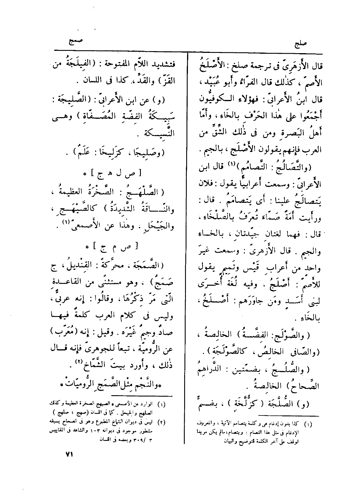 قَالَ الأَزهَرِيّ فِي تَرْجَمَة صلخ: الأَصْلَخُ الأَصمّ، كذالك قَالَ الفرّاءُ وأَبو عُبَيْد، قَالَ ابنُ الأَعرابيّ: فهؤلاءِ الكوفيُّون أَجْمَعُوا على هاذا الجَرْفِ بخَاءِ، وأَمّا أَهلْ البَصرةِ وَمن فِي ذالك الشِّقِّ من الْعَرَب فإِنهم يَقُولُونَ الأَصْلَج، بِالْجِيم.