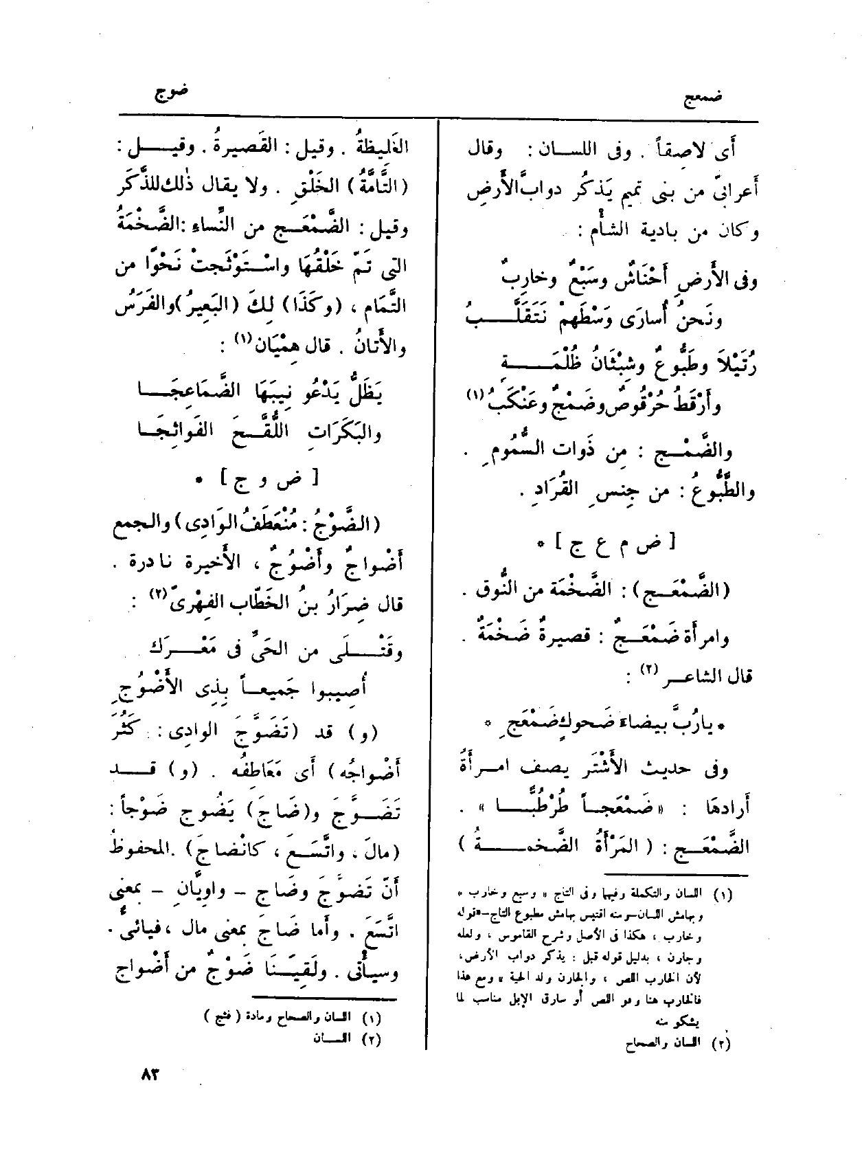 وامرأَة ضَمْعَجٌ: قصيرةٌ ضَخْمَةٌ. قَالَ الشَّاعِر: