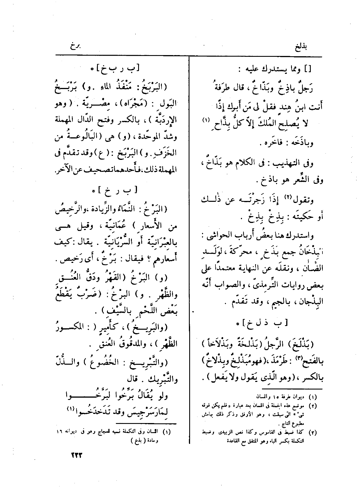 واستدرك هُنَا بعضُ أَرباب الْحَوَاشِي: البِذْخَانُ جمع بَذَخٍ، محرّكةَ، لوَلَدِ الضَّان، ونقلَه عَن النِّهَايَة مُعْتَمدًا على بعض رِوَايَات التِّرمِذيّ، وَالصَّوَاب أَنّه البِذْجان، بِالْجِيم، وَقد تَقدّم.