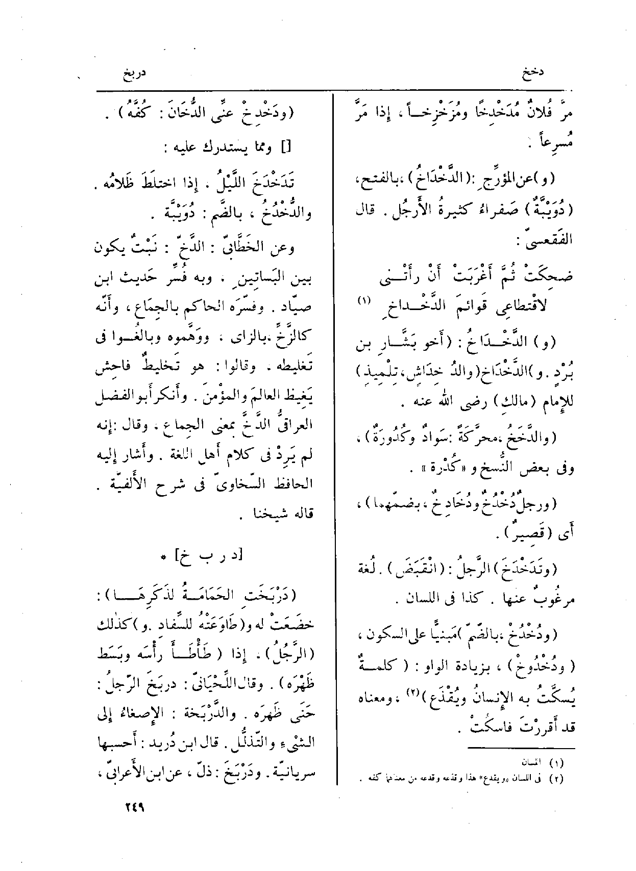 (و) الدَّخْدَاخ: (أَخو بَشَّارِ بن بُرْدٍ. و) الدَّخْدَاخ (والدُ خِدَاشٍ، تِلْمِيذٍ) للإِمام (مَالك) رَضِيَ اللَّهُ عنهُ.