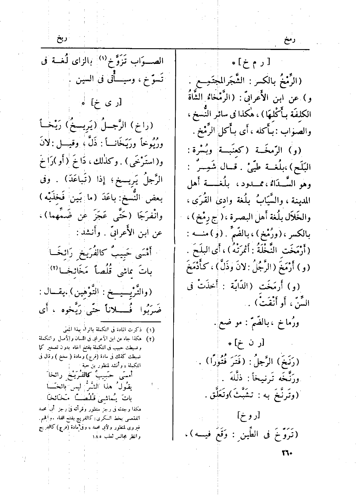 : (تَرَوّخَ فِي الطِّينِ: وَقَعَ فِيهِ) ، الصوَاب تَزَوَّخ بالزاي لُغة فِي تَسوّخ، وسيأْتي فِي السِّين.