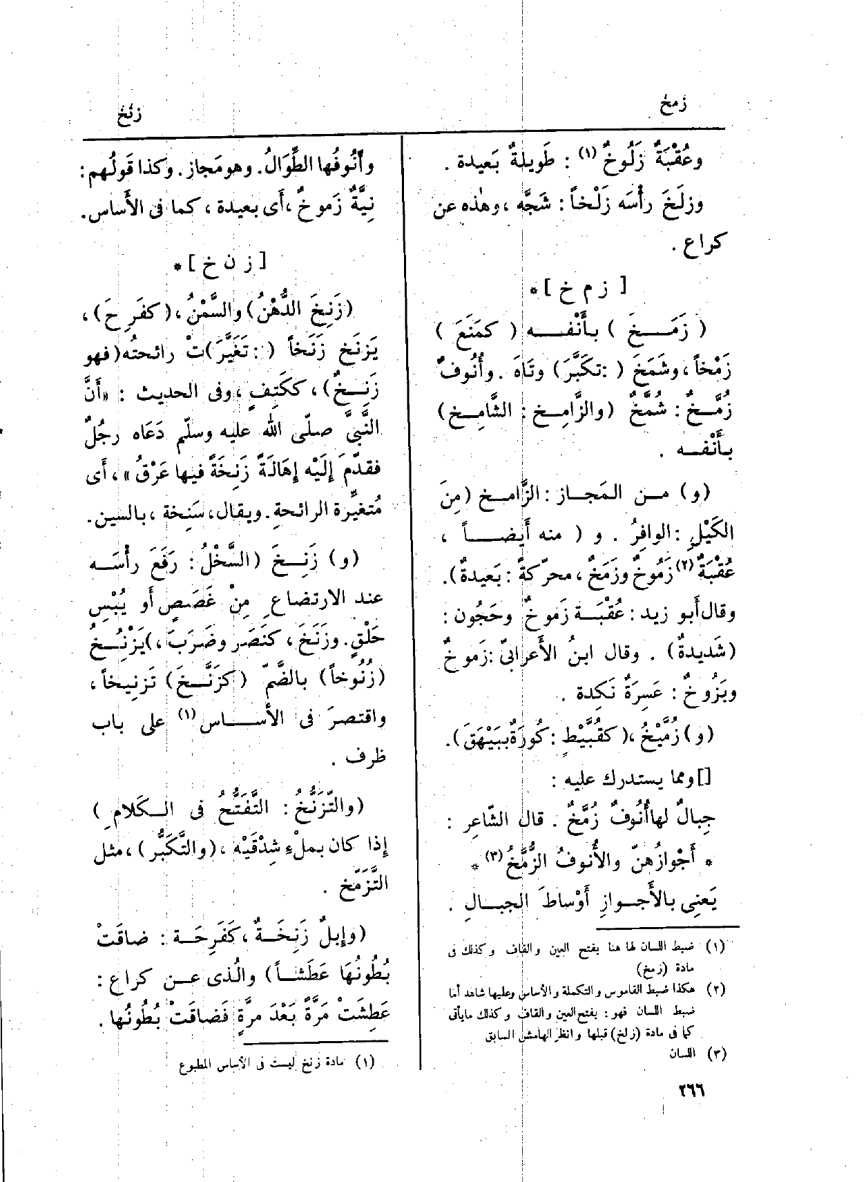 (و) من الْمجَاز: الزَّامُ (مِنَ الكَيْلِ: الوافِرُ. و (مِنْهُ أَيضاً، عُقْبَةٌ زَمُوخٌ وزَمَخٌ، محرّكةً: بَعيدةٌ) . وَقَالَ أَبو زيد: عُقْبَة زَموخٌ وحَجُون: (شَديدةٌ) . وَقَالَ ابنُ الأَعرابيّ: زَموخٌ وبَزُوخٌ: عَسِرَةٌ نَكِدة.