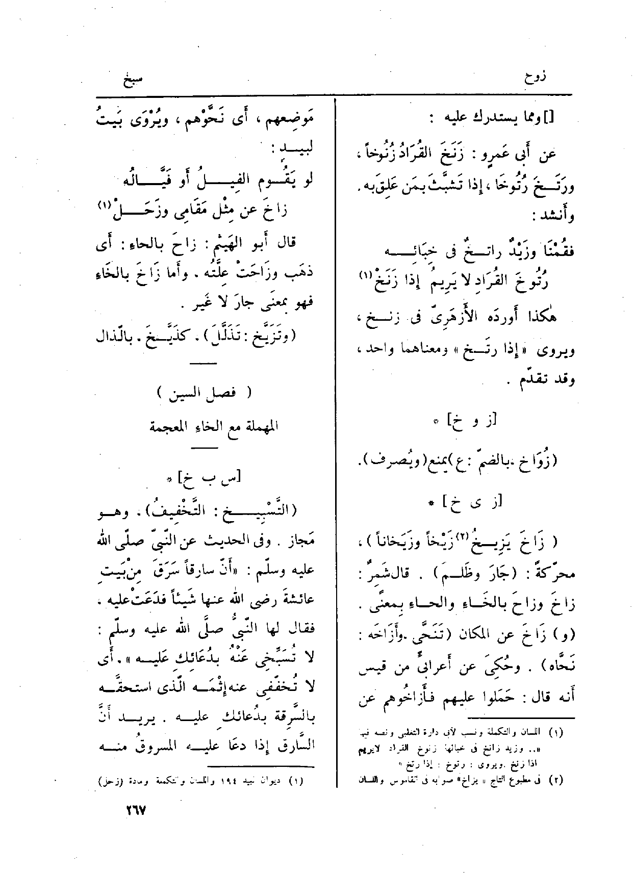 قَالَ أَبو الهَيثم: زاحَ بالحاءِ: أَي ذهَب وزَاحَتْ عِلَّتُه، وأَما زَاخَ بالخاءِ فَهُوَ بِمَعْنى حارَ لَا غَير.