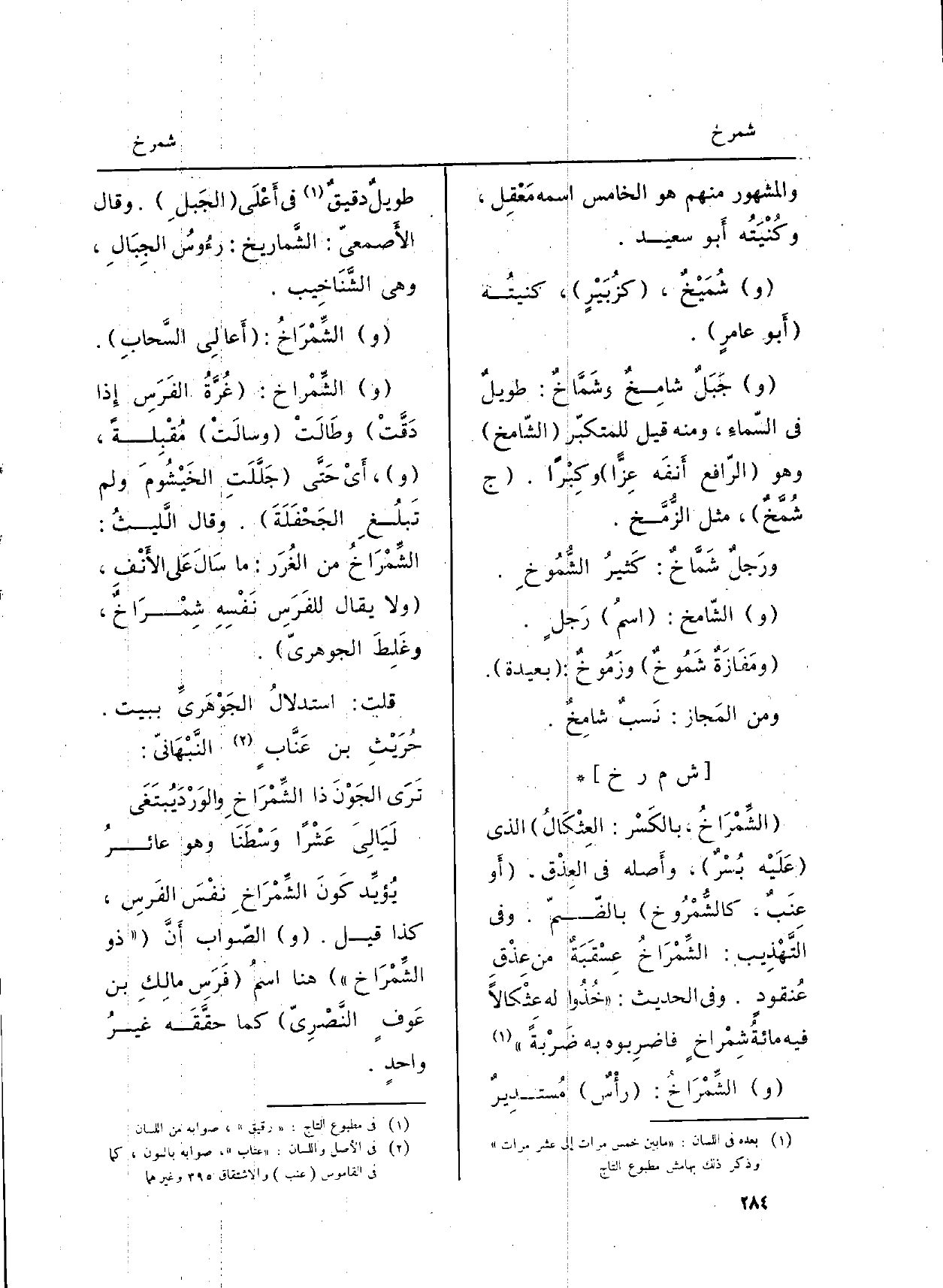 يُؤيِّد كَونَ الشِّمْرَاخِ نفْسَ الفَرسِ، كَذَا قيل: (و) الصّواب أَنَّ ((ذُو الشِّمْرَاخ)) هُنَا اسمُ (فَرَسِ مالِكِ بن عَوفٍ النَّصْرِيّ) كَمَا حقَّقَه غيرُ واحدٍ.
