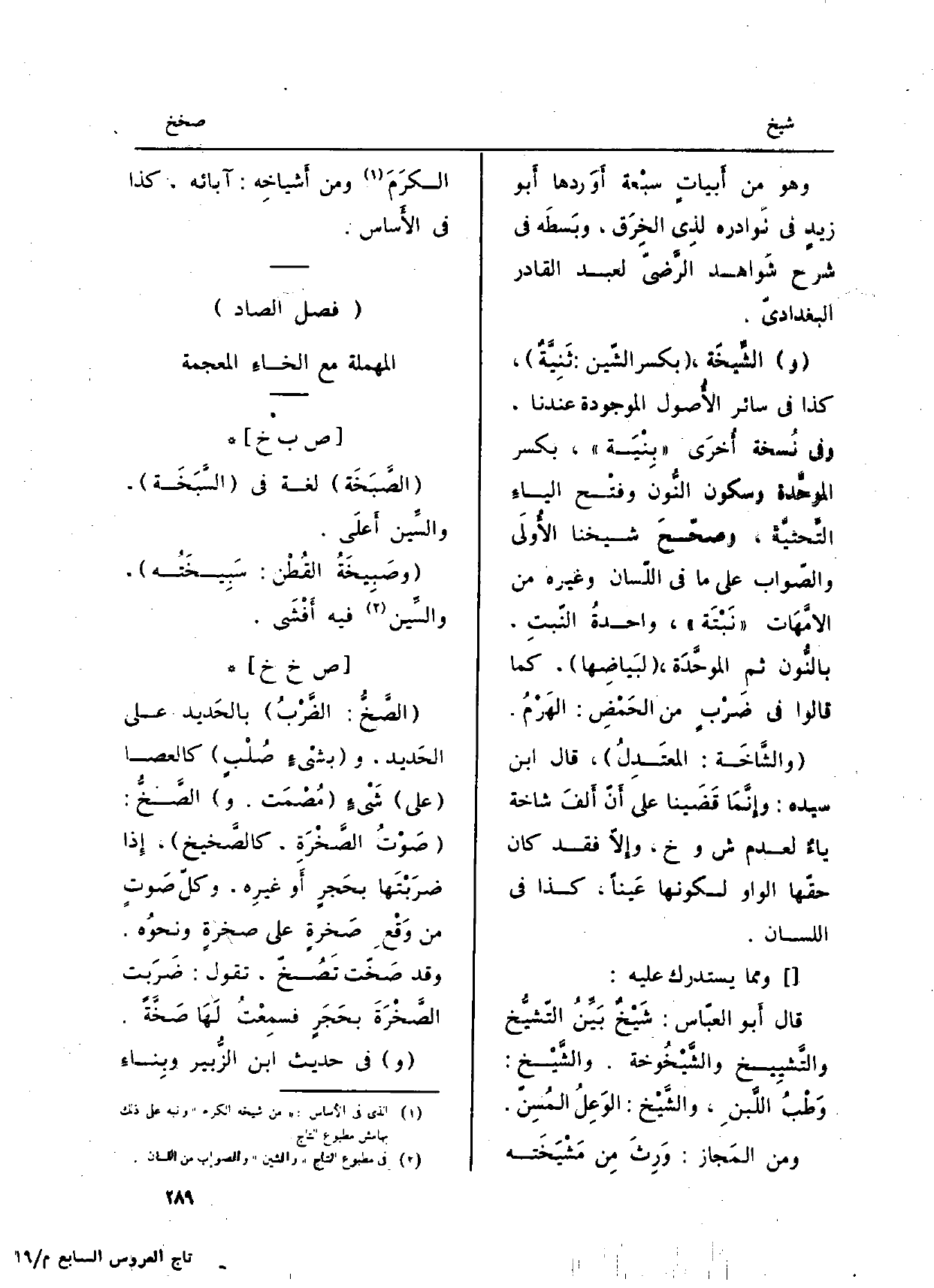 (فصل الصَّاد) الْمُهْملَة مَعَ الخاءِ الْمُعْجَمَة)
