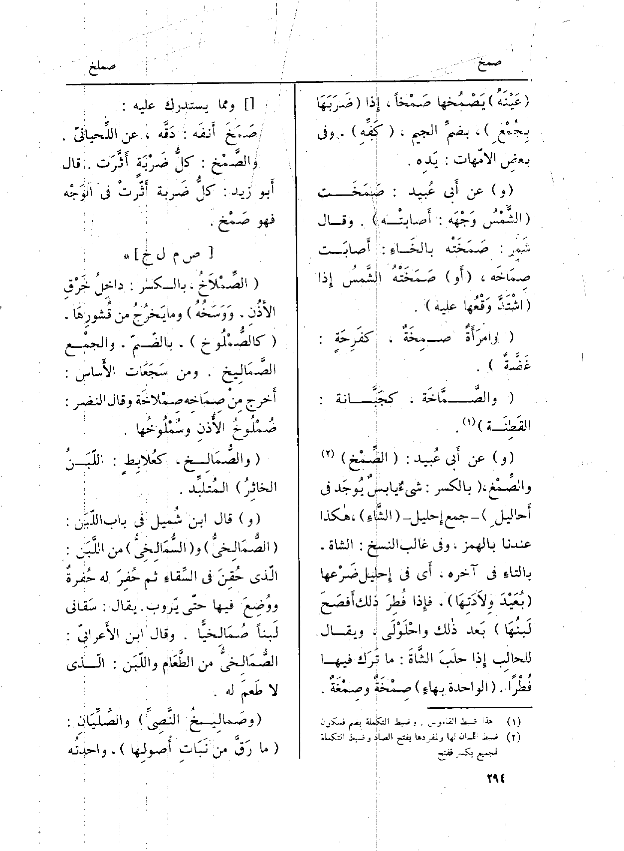 (و) عَن أَبي عُبيد: (الصِّمْخ) والصِّمْغ، (السكر: شيءٌ يابسٌ يُوجَد فِي أَحاليلِ) جمع إِحليل الصااءِ، هاكذا عندنَا بِالْهَمْز، وَفِي غَالب النّسخ: الشَّاة، بالتاءِ فِي آخِره، أَي فِي إِحليل ضَرْعها (بُعَيْدَ وِلاَدَتِهَا) ، فإِذا فُطِرَ ذَلِك أَفصَحَ (لَبنُهَا) بَعد ذالك واحْلَوْلَي، وَيُقَال للحالِب إِذا حلَبَ الشَّاةَ: مَا تَرَك فِيهَا فُطْراً. (الْوَاحِدَة بهاءٍ) صِمْخَةٌ وصِمْغَةٌ.