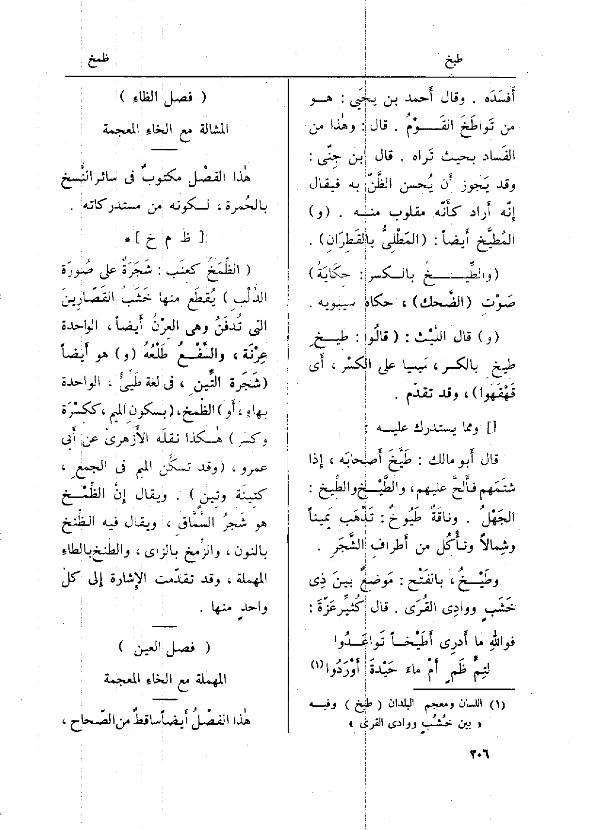 (فصل الظاءِ) المشالة مَعَ الخاءِ الْمُعْجَمَة)