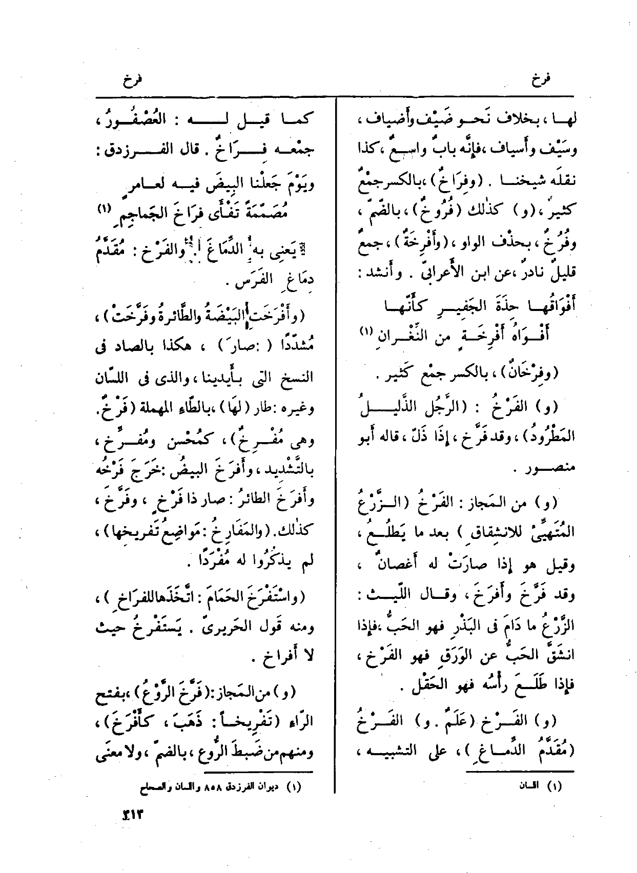 (وفِرخَانٌ) ، بِالْكَسْرِ جمْع كَثير.