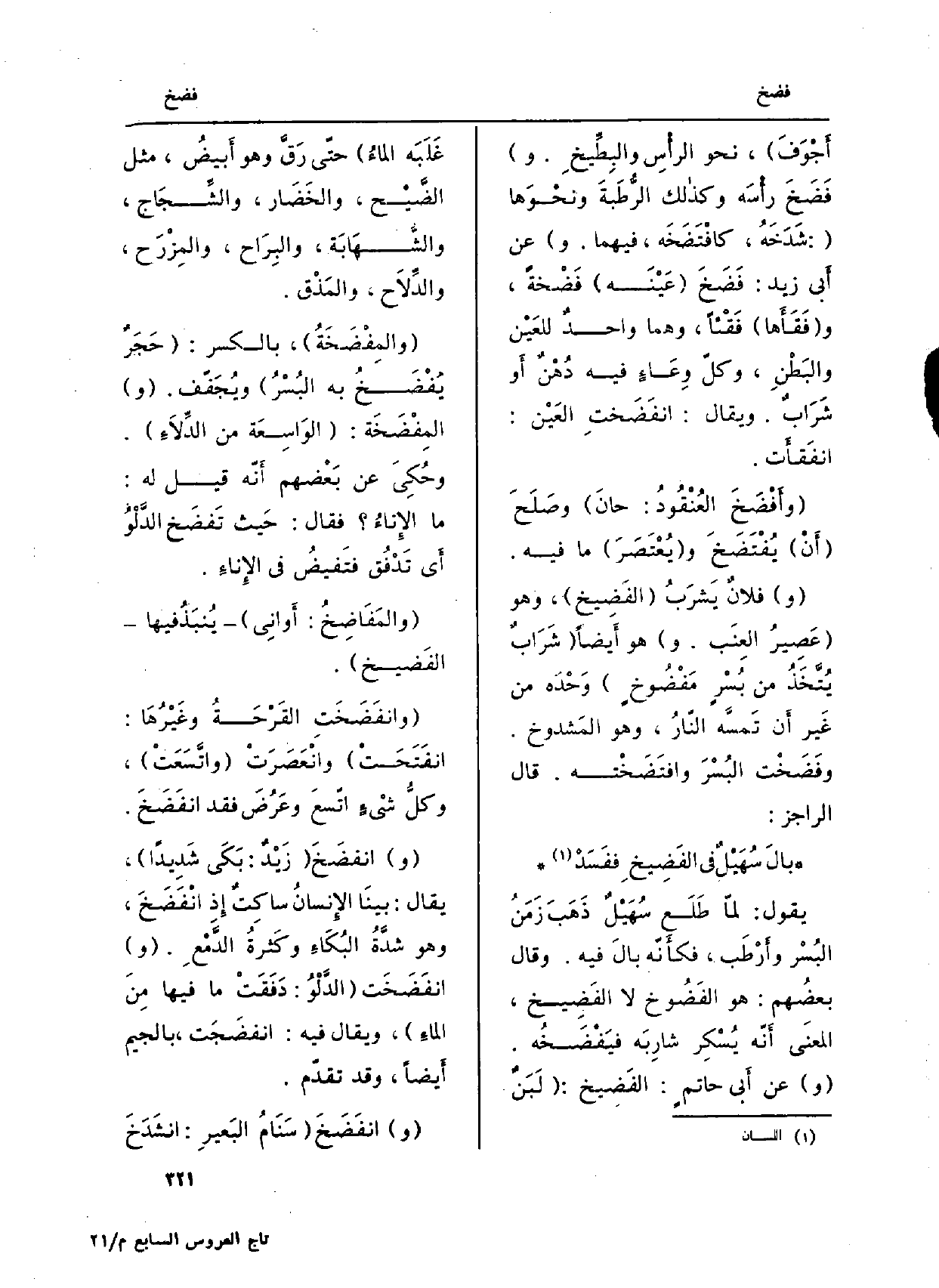 (وانفَضَخَتِ لقَرْحَةُ وغَيْرُهَا: انفَتَحَتْ) وانْعَصَرَتْ (واتَّسَعَتْ) ، وكلُّ شيْءٍ اتّسعَ وعَرُضَ فقد انفضَخَ.