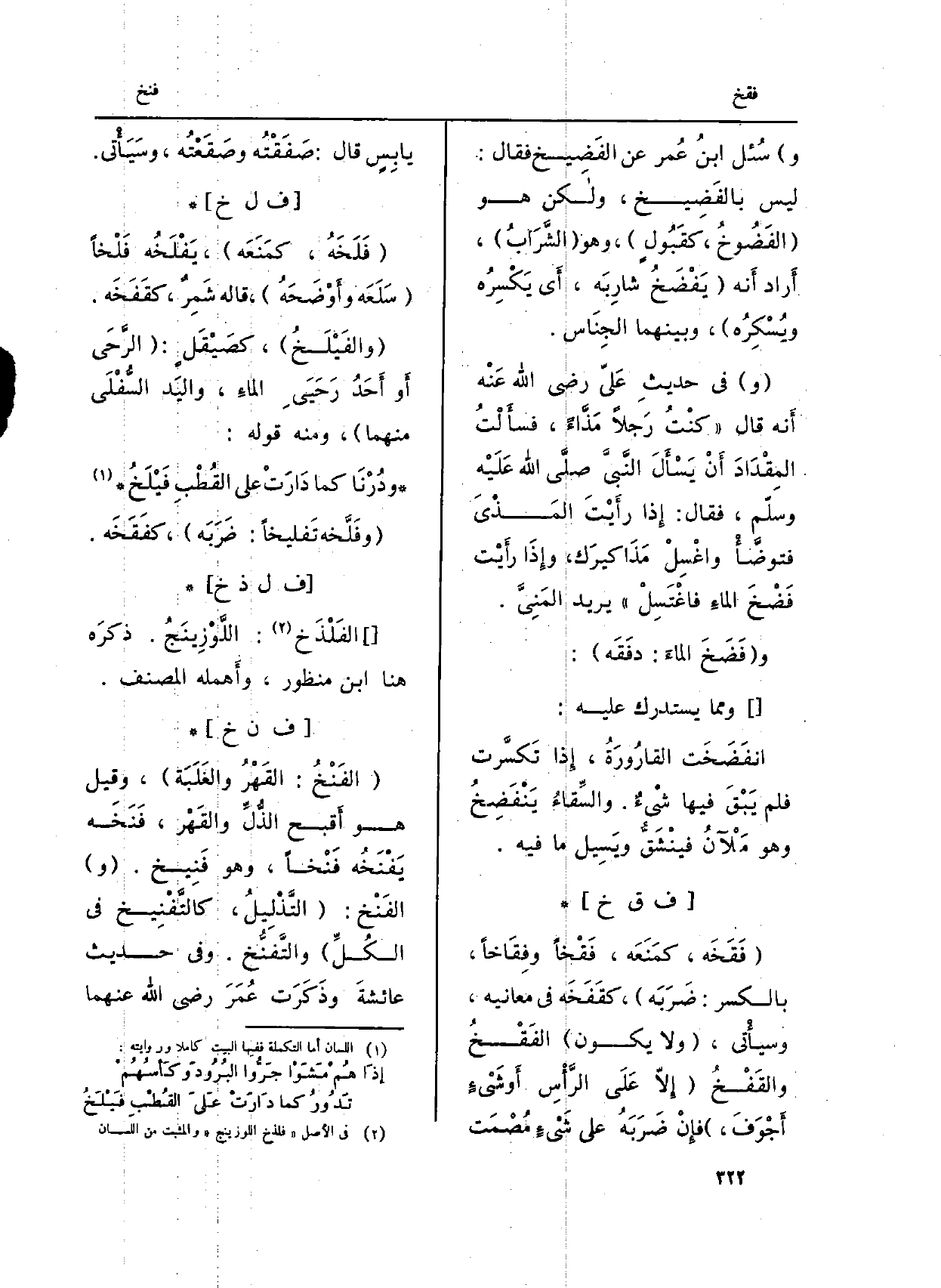 : (فَلَخَهُ، كمَنَعَه) ، يَفْلَخُه فَلْخاً (سَلَعَه وأَوْضَحَهُ) ، قَالَه شَمِرٌ، كقَفَخَه.