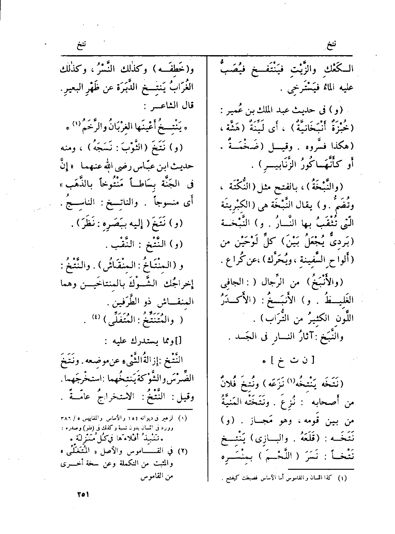 النَّتْخ: إِزالةُ الشَّيْءِ عَن موضِعه. ونَتَخَ الضِّرْسَ والشَّوْكَة يَنتِخُهما: استخْرجَهما. وَقيل: النَّتْخُ: الاستخراجُ عامّةً.