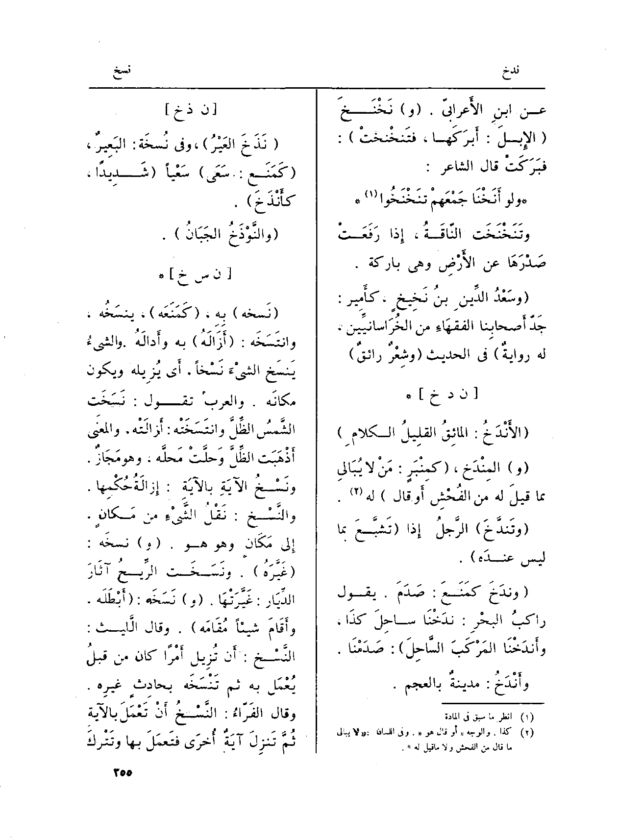 : (نَذَخَ العَيْرُ) ، وَفِي نُسخَة: البَعِيرُ، (كَمَنَع: سَعَى) سَعْياً (شَدِيداً، كأَنْذَخَ) .