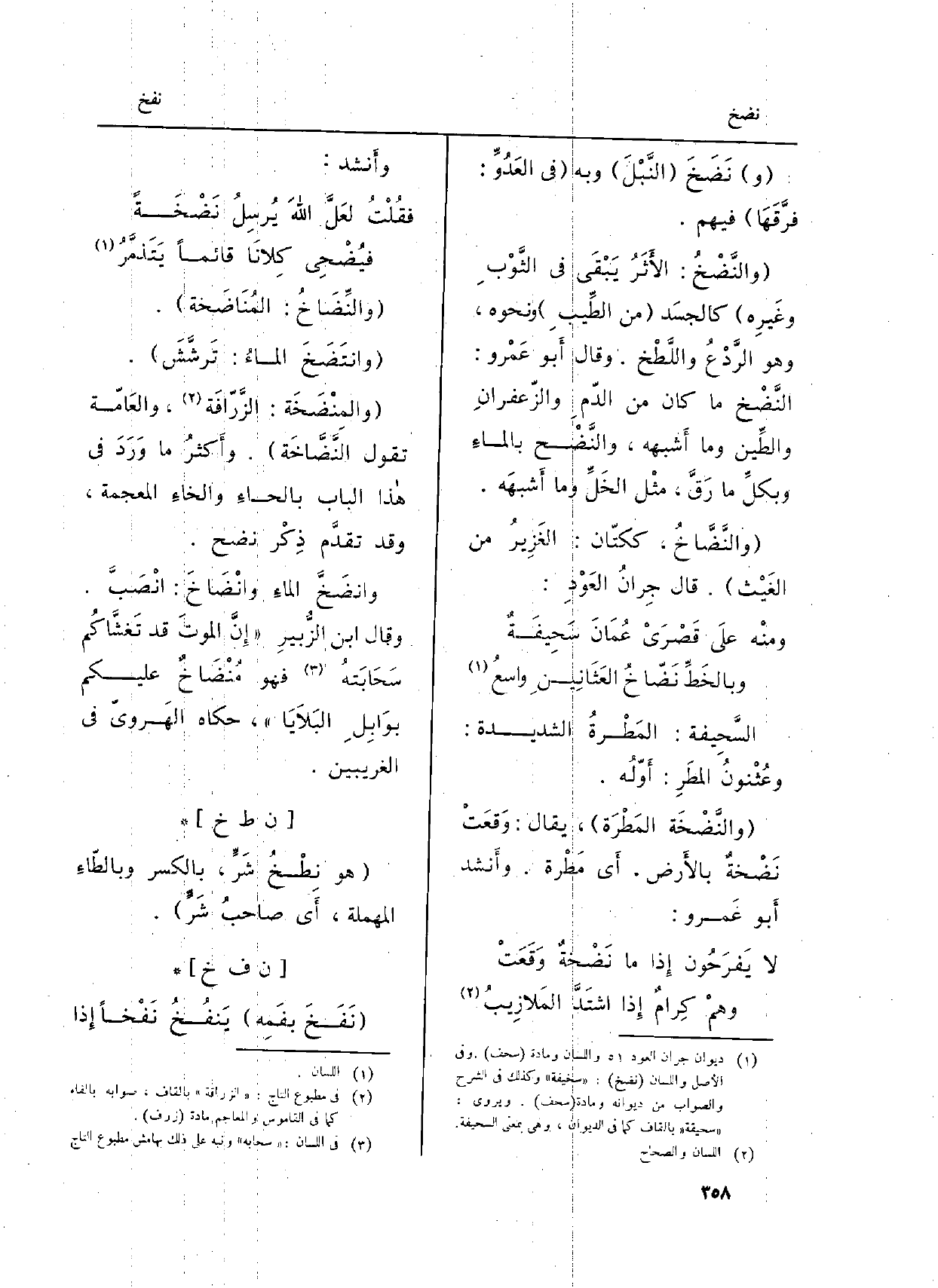 (والمِنْضَخَة: الزَّرّافَة، والعَامّة تَقول النَّضَّاخَة) . وأَكثرُ مَا وَرَدَ فِي هاذا الْبَاب بالحاءُ والخاءِ الْمُعْجَمَة، وَقد تقدَّم ذِكْر نضح.