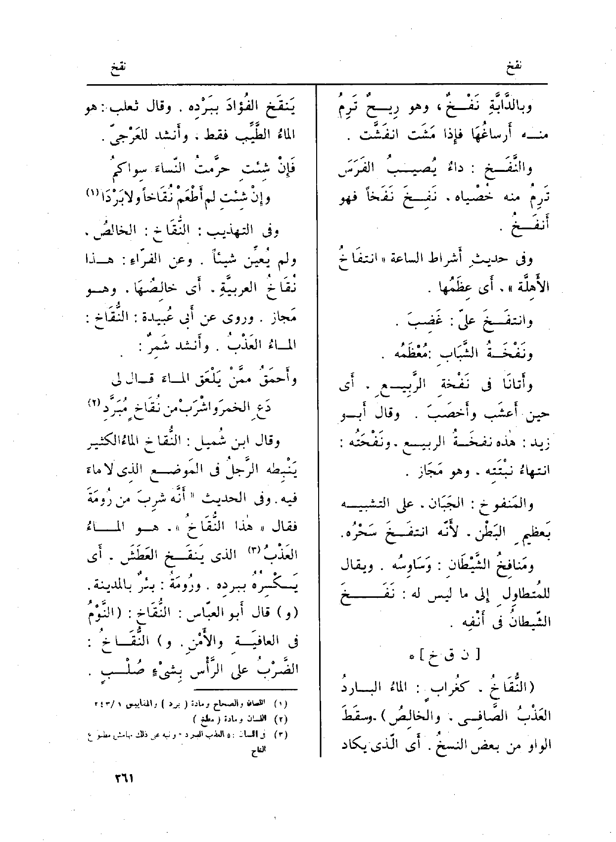 وَفِي (التَّهْذِيب) النُّقَاخ: الخالصُ، وَلم يُعيِّن شَيْئا. وَعَن الفرّاءِ: هَذَا نُقَاخُ العربيَّةِ، أَي خالِصُهَا، وَهُوَ مَجاز. وروى عَن أَبي عُبيدة: النُّقَاخ: الماءُ العَذْبُ. وأَنشد شَمِرٌ: