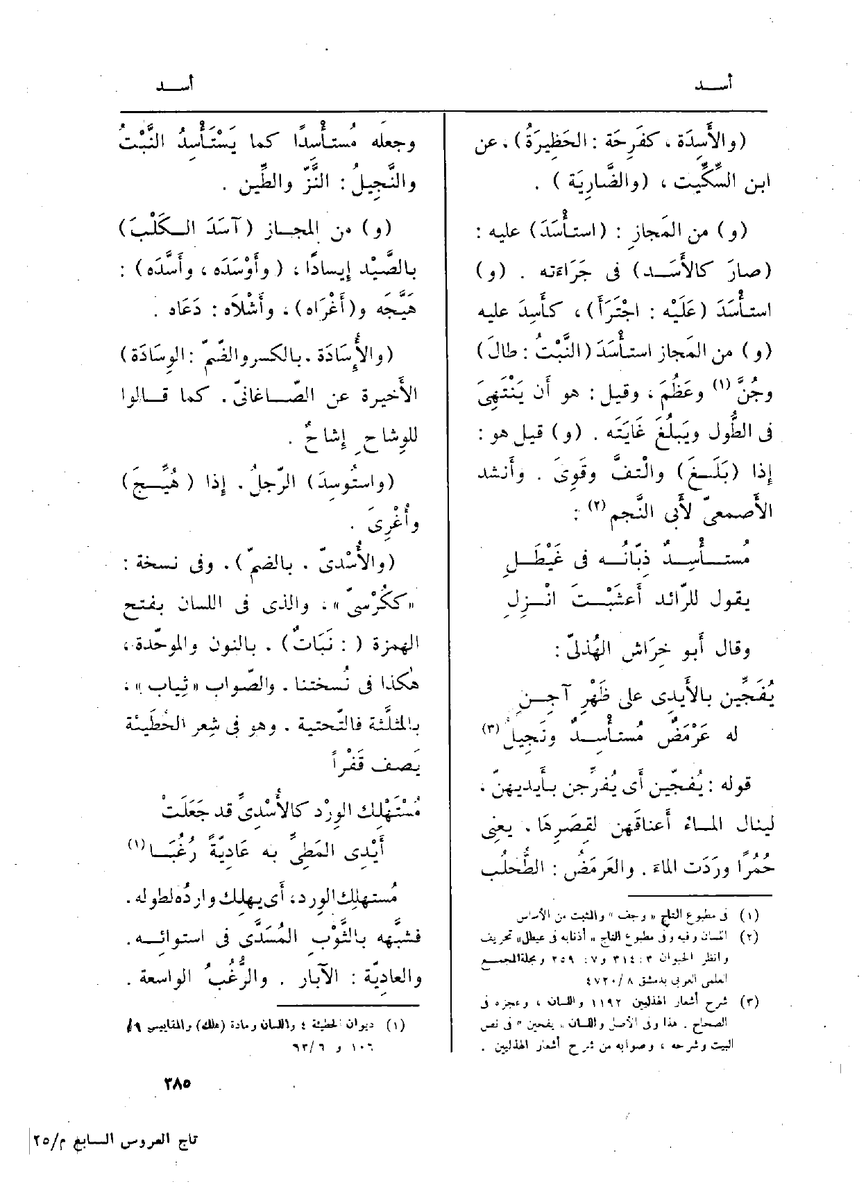 (و) من المَجازِ: (} استأْسَدَ) عَلَيْهِ: (صارَ كالأَسَد) فِي جَرَاءَته. (و) {استأْسَدَ (عَلَيْه: اجْتَرَأَ) ، كأَسِدَ عَلَيْهِ (و) من المَجاز استأْسَدَ (النَّبْتُ: طالَ) وجُنَّ وعَظُمَ، وَقيل: هُوَ أَن يَنْتَهِيَ فِي الطُّول ويَبلُغَ غَايَتَه. (و) قيل هُوَ: إِذا (بَلَغَ) والْتَفَّ وقَوِيَ. وأَنشد الأَصمعيّ لأَبي النَّجم: