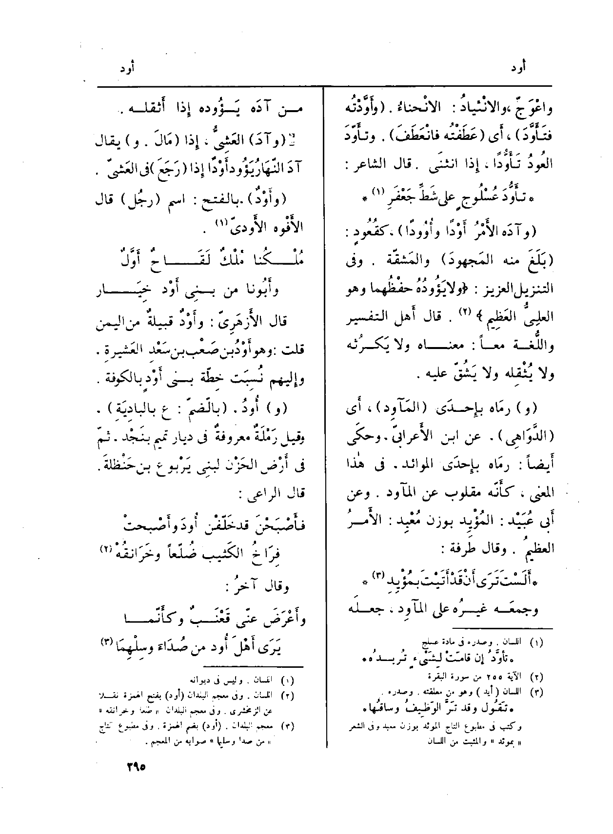 ( {وآدَه الأَمْرُ} أَوْداً {وأُوُوداً) ، كقُعُودٍ: (بَلَغَ مِنْهُ المَجهودَ) والمَشقّة. وَفِي التَّنْزِيل الْعَزِيز: {7. 022 وَلَا} يَؤُودُهُ خفظهما. . الْعَظِيم} (الْبَقَرَة: 255) . قَالَ أَهل التَّفْسِير واللُّغة مَعًا: مَعْنَاهُ وَلَا يَكرُثه وَلَا يُثْقله وَلَا يَشْقّ عَلَيْهِ.
