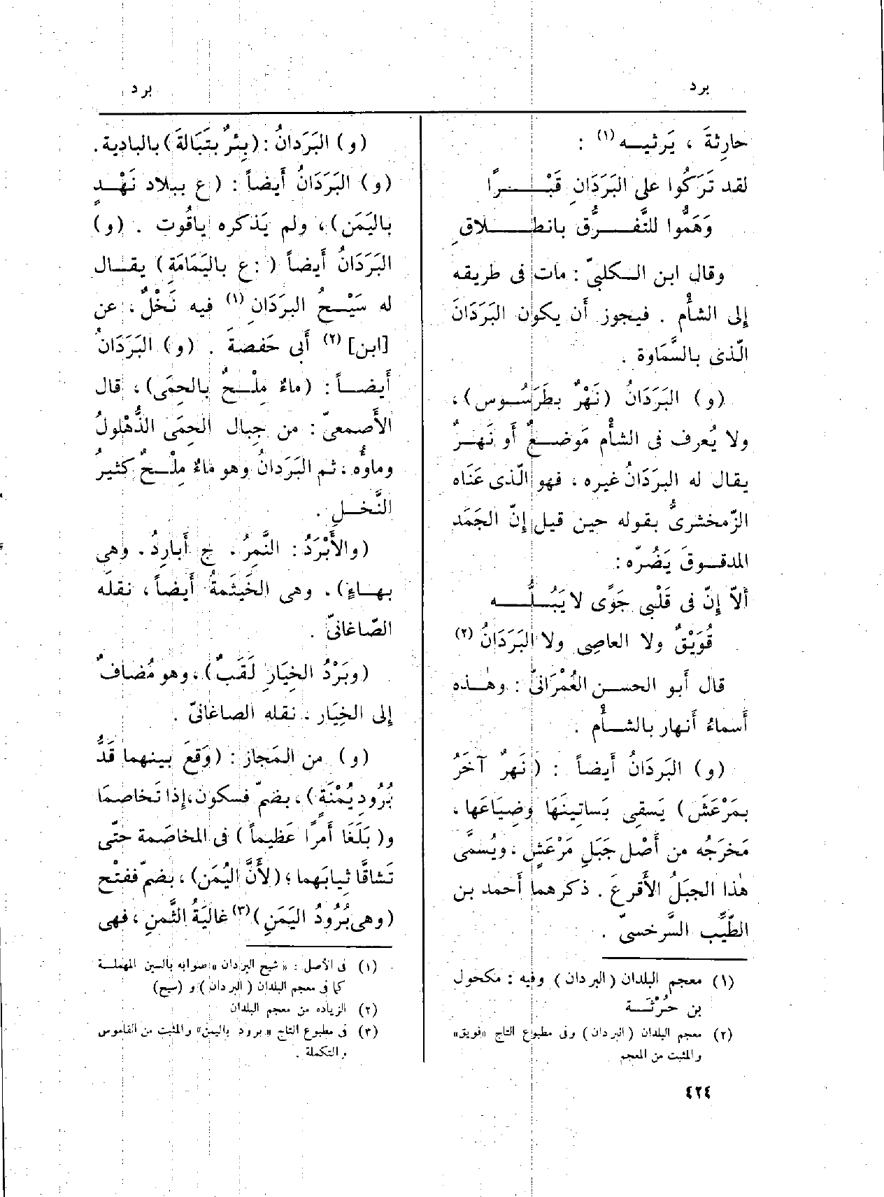 (و) البَرَدَانُ (نَهْرٌ بطَرَسُوس) ، وَلَا يُعرف فِي الشأْم مَوضعٌ أَو نَهرٌ يُقَال لَهُ البرَدَانُ غَيره، فَهُوَ الّذي عَنَاه الزّمخشريُّ بقوله حِين قيل إِنّ الجَمَد المدقوقَ يَضُرّه:
