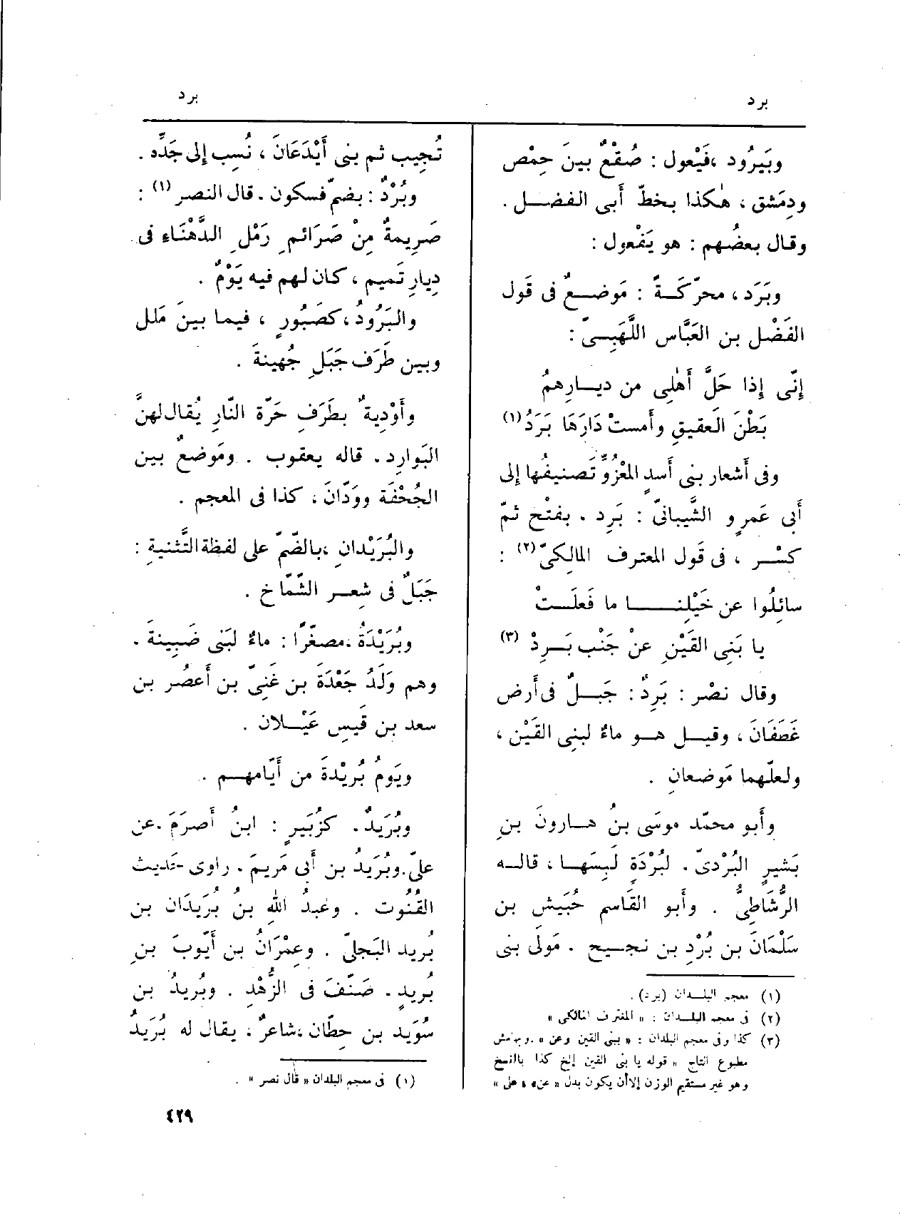 وَفِي أَشعار بني أَسدٍ المعْزُوِّ تَصنيفُها إِلى أَبي عَمرٍ والشَّيبانيّ: بَرِد، بفتْح ثمّ كسْر، فِي قَول الْمُعْتَرف المالِكيّ: