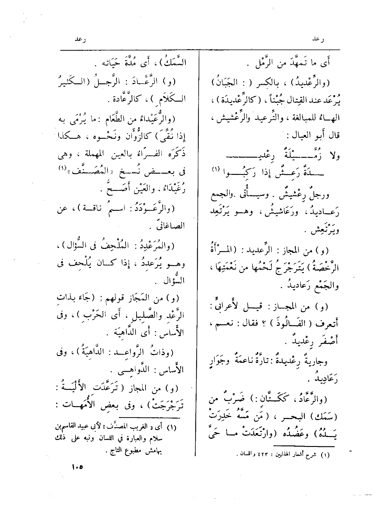 (و) الرَّعَادَ: الرَّجلُ (الكَثيرُ الكَلَامِ) ، كالرَّعَادة.